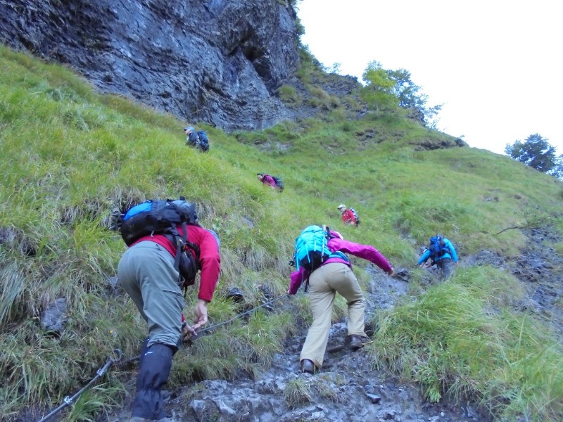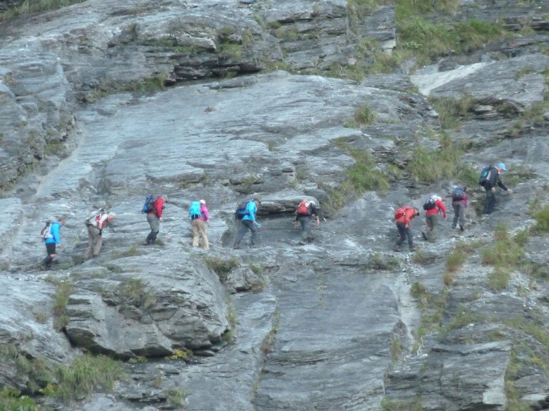Cirque du Fer à Cheval, Pas du Boret, refuge de la Vogealle, Bout du Monde, un séjour du RCMF Bailleul ; départ du parking du Cirque, Plan des Lacs et ses sources, Chalet du Prazon, Pas du Boret, pique-nique à la Pierre du Dard ; aller-retour au refuge de la Vogealle ; descente par le Bout du Monde, retour d'une pelleteuse à l'aide d'un hélicoptère et retour au parking.