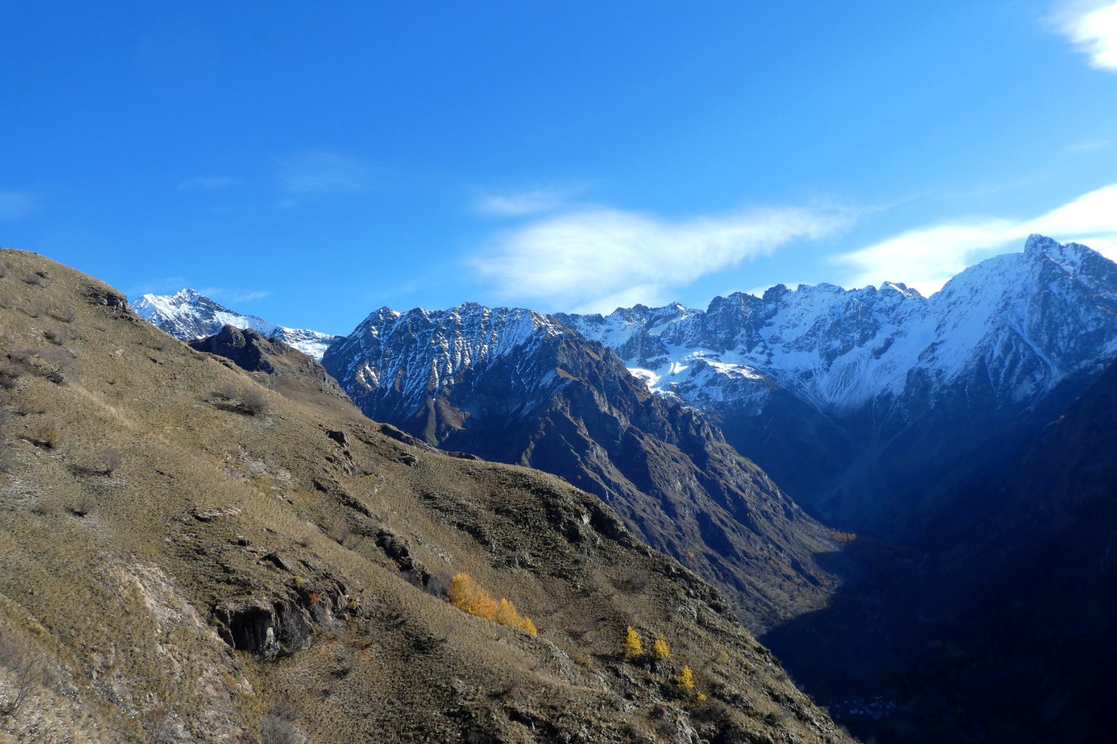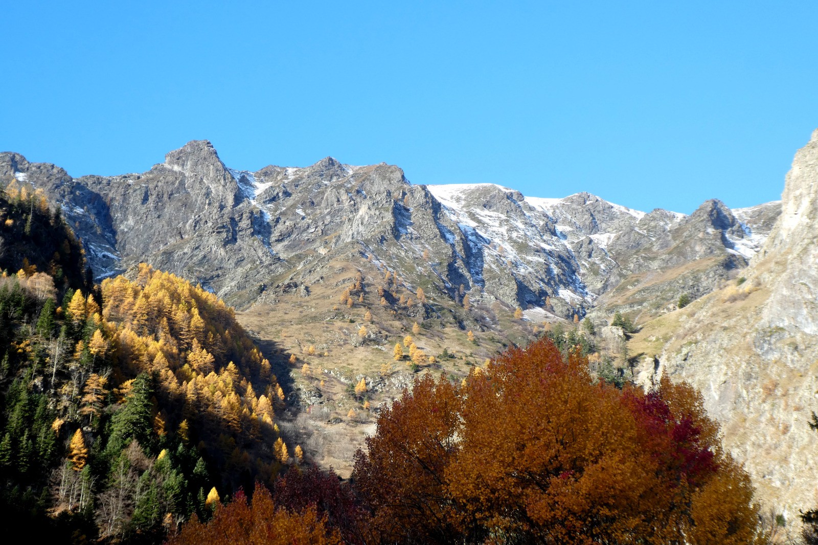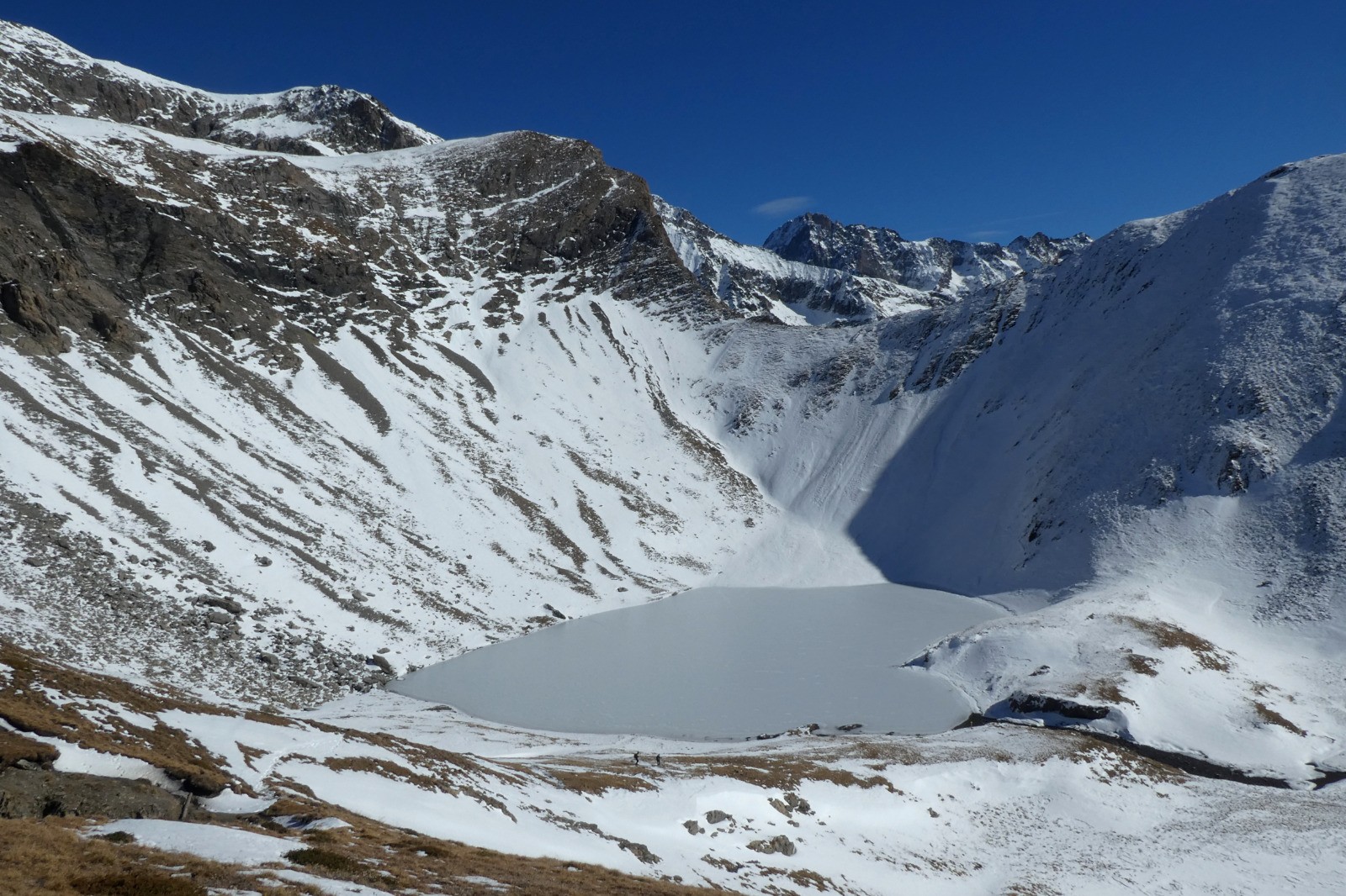 Rando sportive, belles couleurs d'automne, lac glacé.