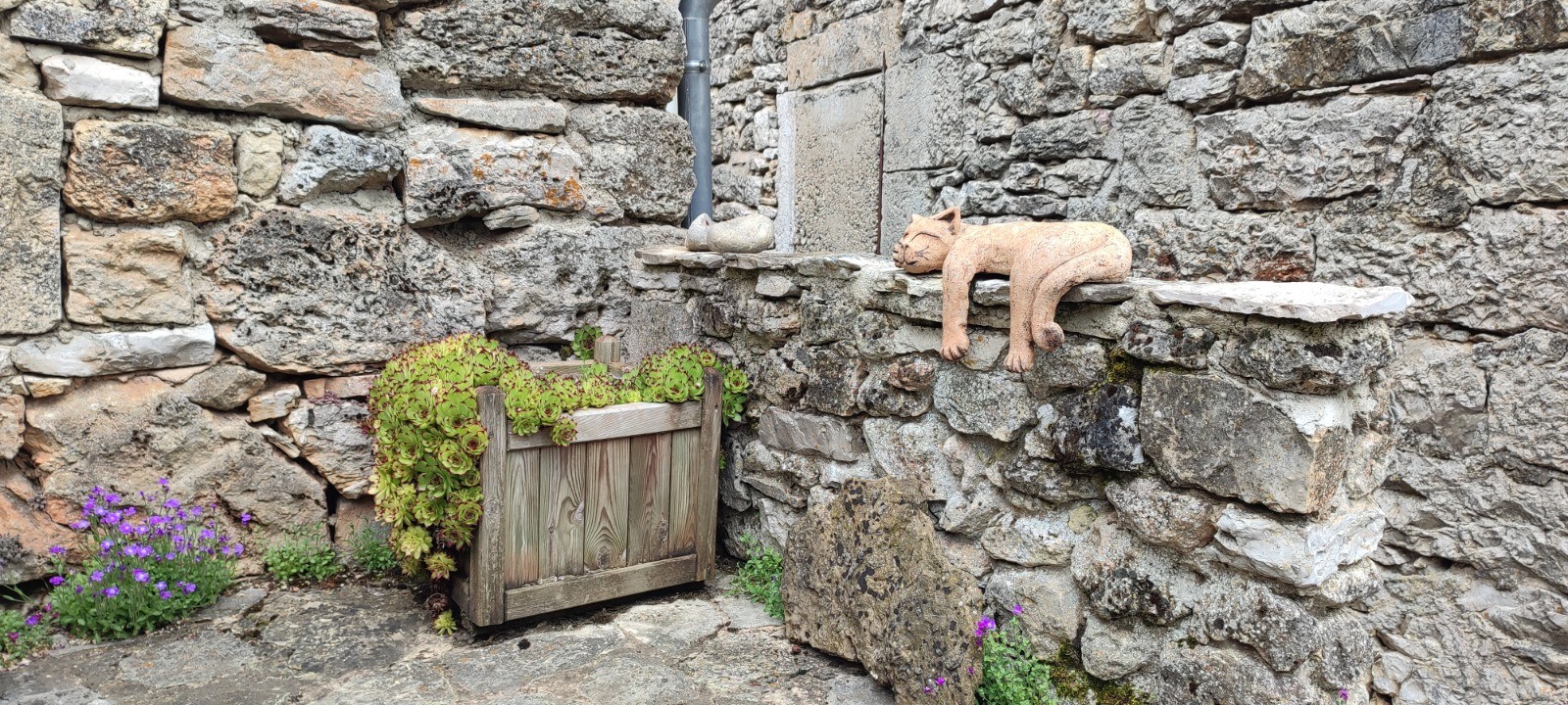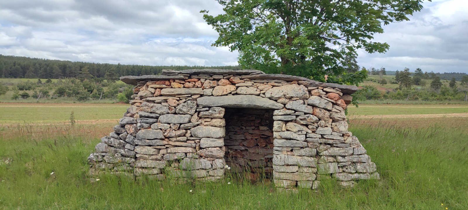 En route le petit aérodrome de Yves, un paysage de causse, très mignon hameau, le Mas de val où l'on mange.