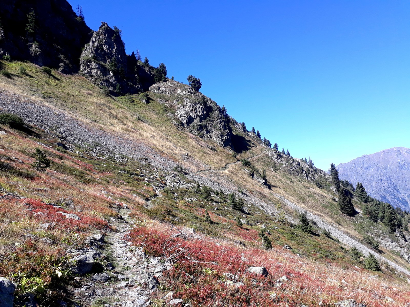 Un sauvage et formidable sentier en balcon face aux grands sommets des Ecrins.