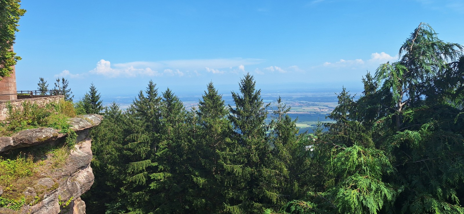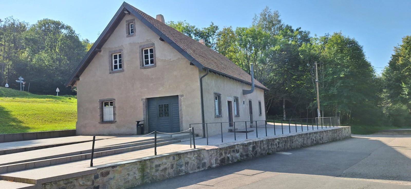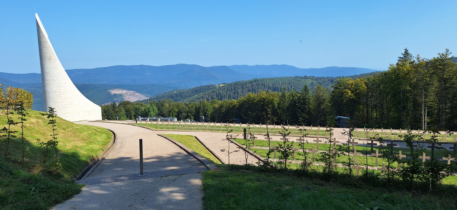 Départ Rothau, direction croix bleu vers le chemin des déportés jusqu'à l'ancien camp du Struthof en passant l'ancienne chambre à gaz. De là direction champ du Messin puis Kreuzberg puis carrefour du Rothlach, ensuite par croix jaune Chemin des Bornes jusqu'au carrefour de la Breitmatt, puis D426 jusqu'au Mont Saint Odile. retour avec variante de la D426 vers la Welschbruch et D130 jusqu'à Rothlach.Autre variante vers le Struthof en empruntant le GR5 rectangle rouge, et retour par chemin des déportés jusqu'à Rothau.
