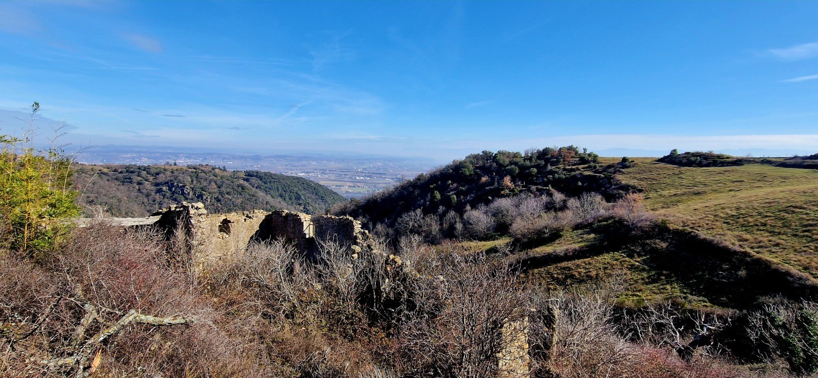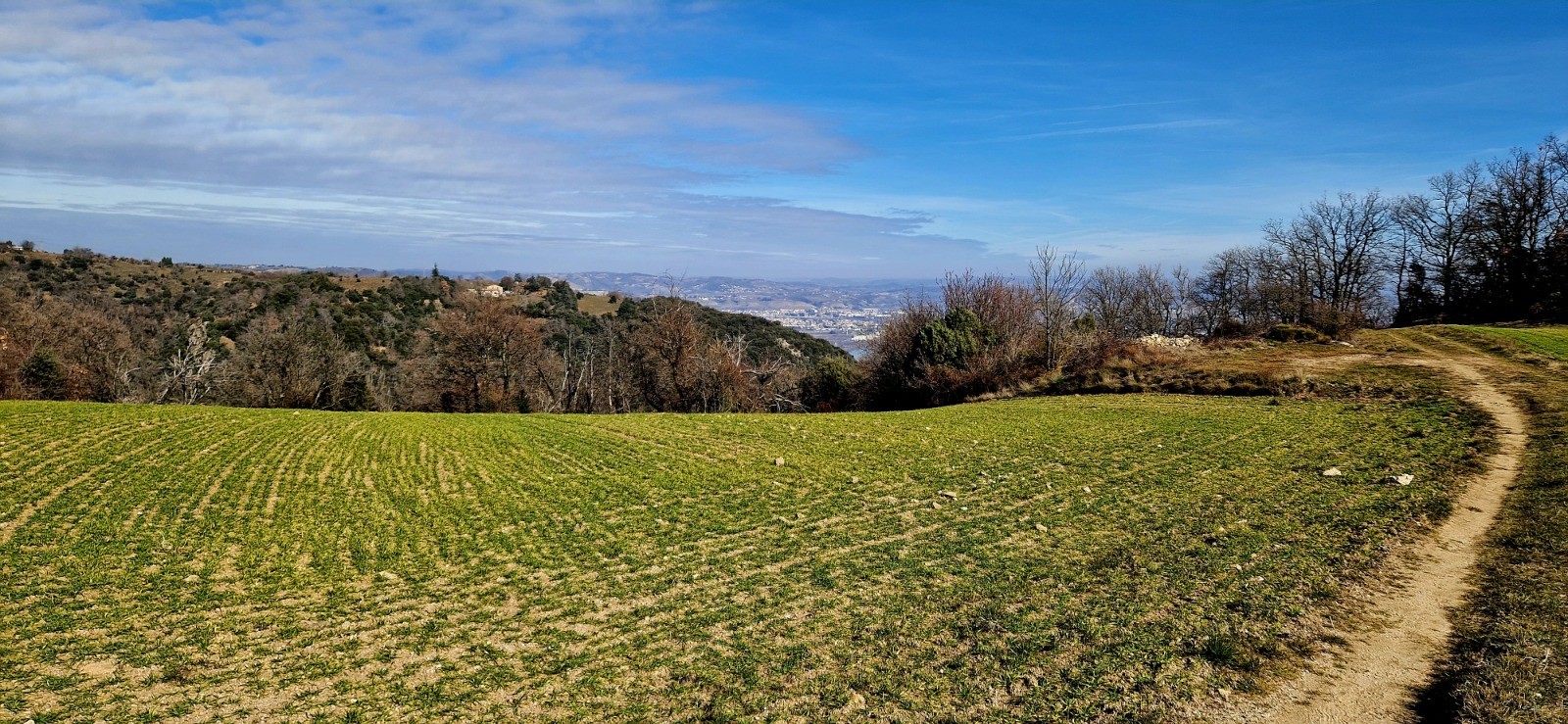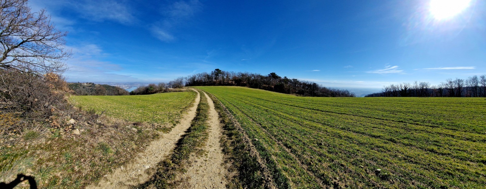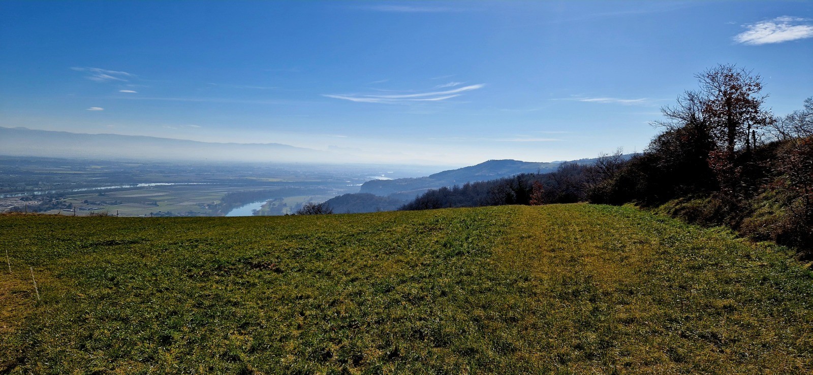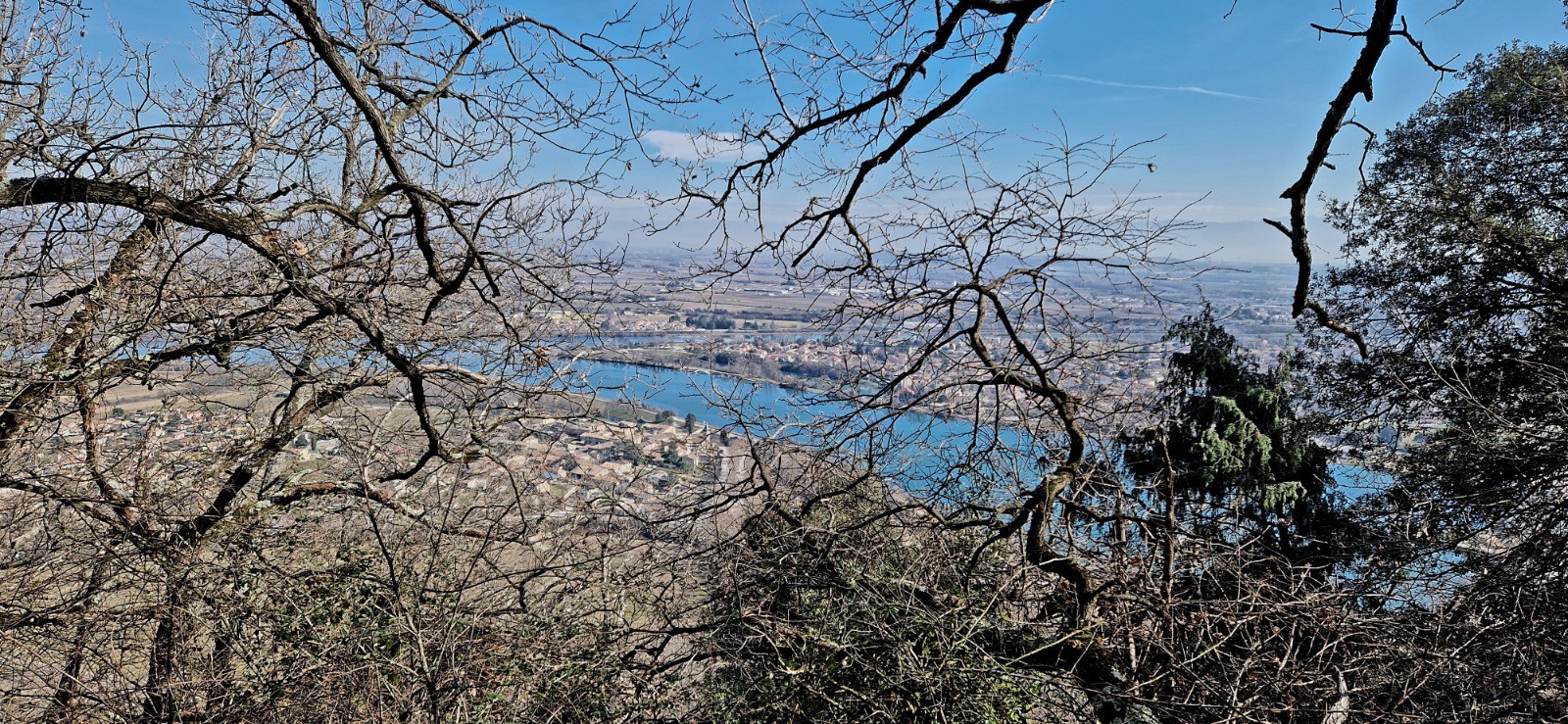 Petit passage sur la "Via-Rh�na" en direction du bassin des Musards. Il faut longer l'�tang jusqu'� la nouvelle passerelle (pi�tonne) qui nous emm�ne en Ard�che sur la commune de Glun. Juste apr�s la passerelle, il faut descendre � gauche vers le ruisseau "le Rioudard" en direction du chemin de fer. Passer le petit pont en bois et prendre � droite sur 600 m�tre (le long du chemin de fer) et prendre le petit tunnel � gauche pour se retrouver le l'autre c�t� de la voie ferr�e. traverser la D86 et se diriger vers le Nord (� droite donc) sur 50 m�tres le long des vignes. Prendre le 1er chemin � gauche sur 100m�tres en direction de la montagne Ard�choise que nous allons gravir. A gauche le d�part du PR (marquage blanc et jaune). Passer la barri�re en bois et apr�s quelques m�tres prendre � droite � la "patte d'oie" le chemin qui monte (d'ailleurs c'est � ce croisement que la boucle de la sortie sera effectu�e. L'ascension commence. Apr�s 1400 m�tres de marche, il y a un croisement, le PR qui faut emprunter est � gauche (celui qui part � droite en direction de "la Croix de Beyrieux" est barr� par des troncs d'arbre) en direction des "Pommeries". Arriv� aux Pommeries (le sommet de cette balade - 400m d'altitude), il faut prendre � gauche (direction EST) en suivant le PR jusqu'au hameau "les Cl�ts". Continuer sur le m�me chemin de terre (PR) en direction du Rh�ne (EST) et attaquer le descente toujours par le seul et m�me chemin qui m�ne � la patte d'oie. Prendre le chemin � droite jusqu'� la barri�re en bois. Le retour se fait comme � l'aller en traversant la D86 / tunnel sous chemin de fer / � droite le long de la voie ferr�e / 3�me � gauche jusqu'au pont de bois qui traverse le Rioudard / remonter jusqu'au barrage, la passerelle pi�tonne, � gauche le long du Rh�ne / le bassin des musards toujours le long du Rh�ne jusqu'au Pont de d�part par la Via-Rh�na.