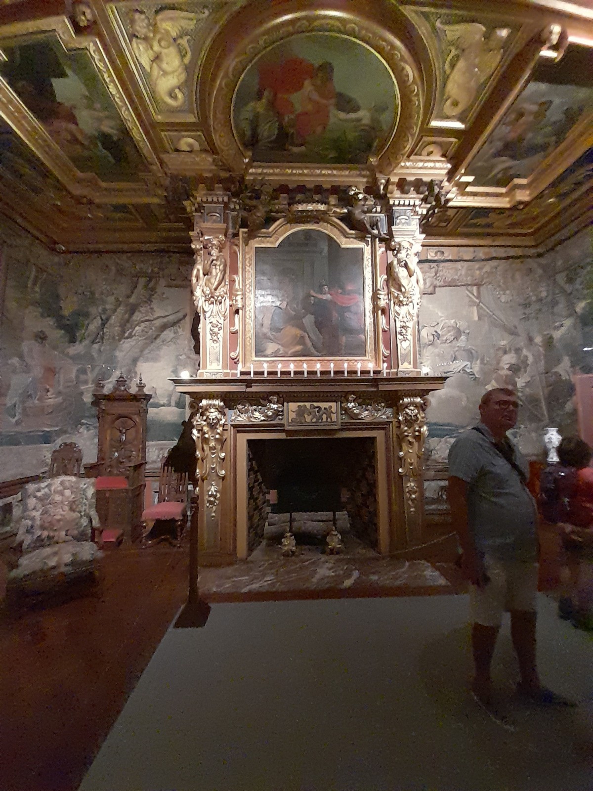 Bonjour, Cheverny, le mythique château de Tintin. La façade du château ne dénote pas à Hergé, on est vraiment sur la BD, mais le journaliste est au rang des absent. Le parcours, bien sur interdit au toutous laisse à désirer. Des alcôves pour voir les pièces et attendre son tour pour admirer. N'en reste pas moins des salles magnifiquement riches en décoration. Notamment, celle que j'ai nommé, faute de titre, la salle dorée. un tour dans le parc et au retour, surprise pour un domaine qui ne reçoit pas nos amis à quatre pattes, un chien en effigie. Va comprendre.. Une belle visite.