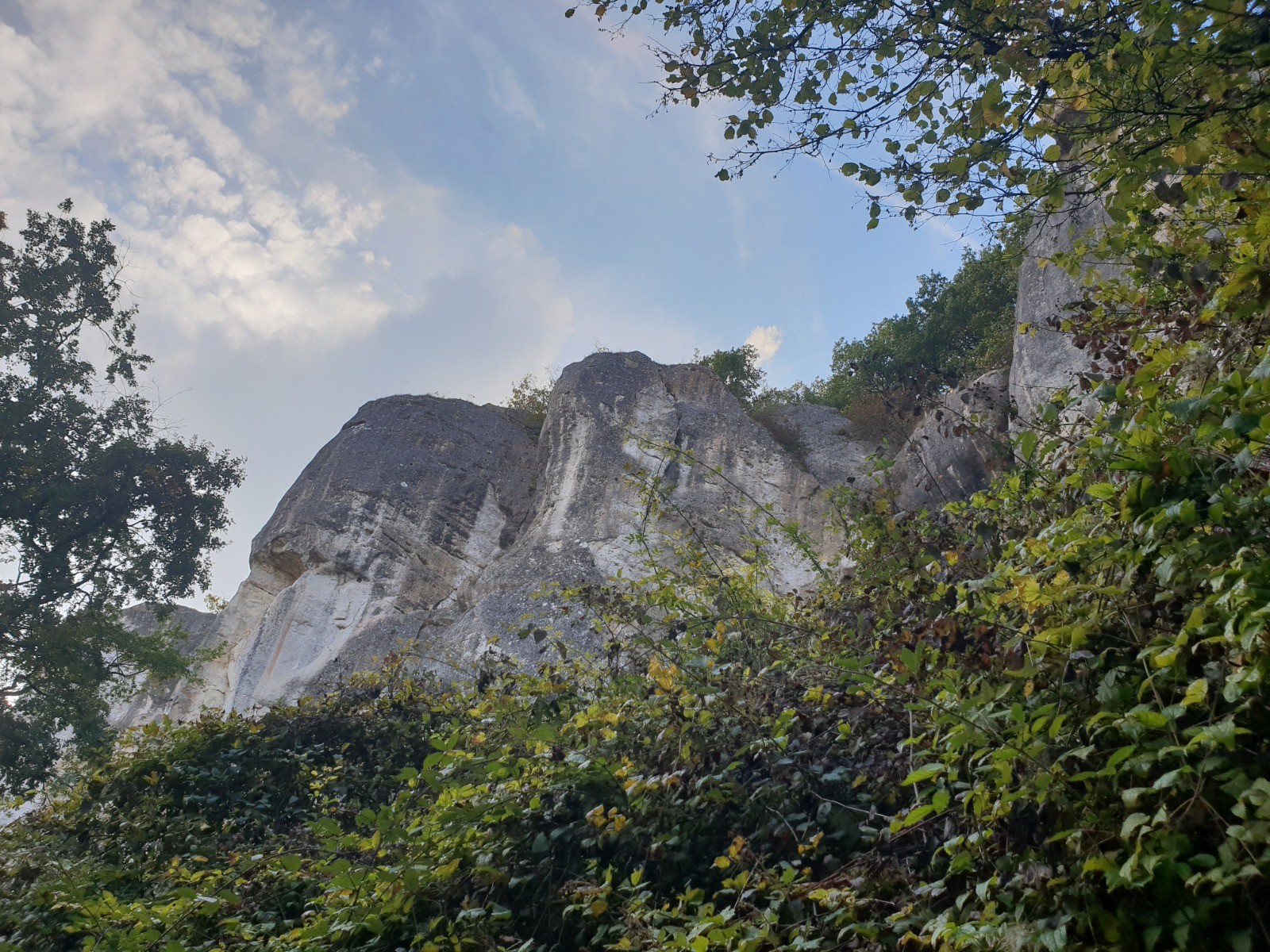 Paroi école d'escalade avec à la base la grotte aux "Fées".