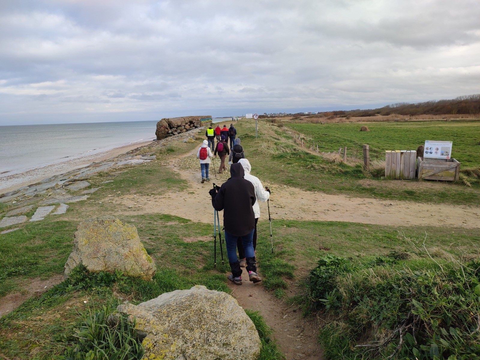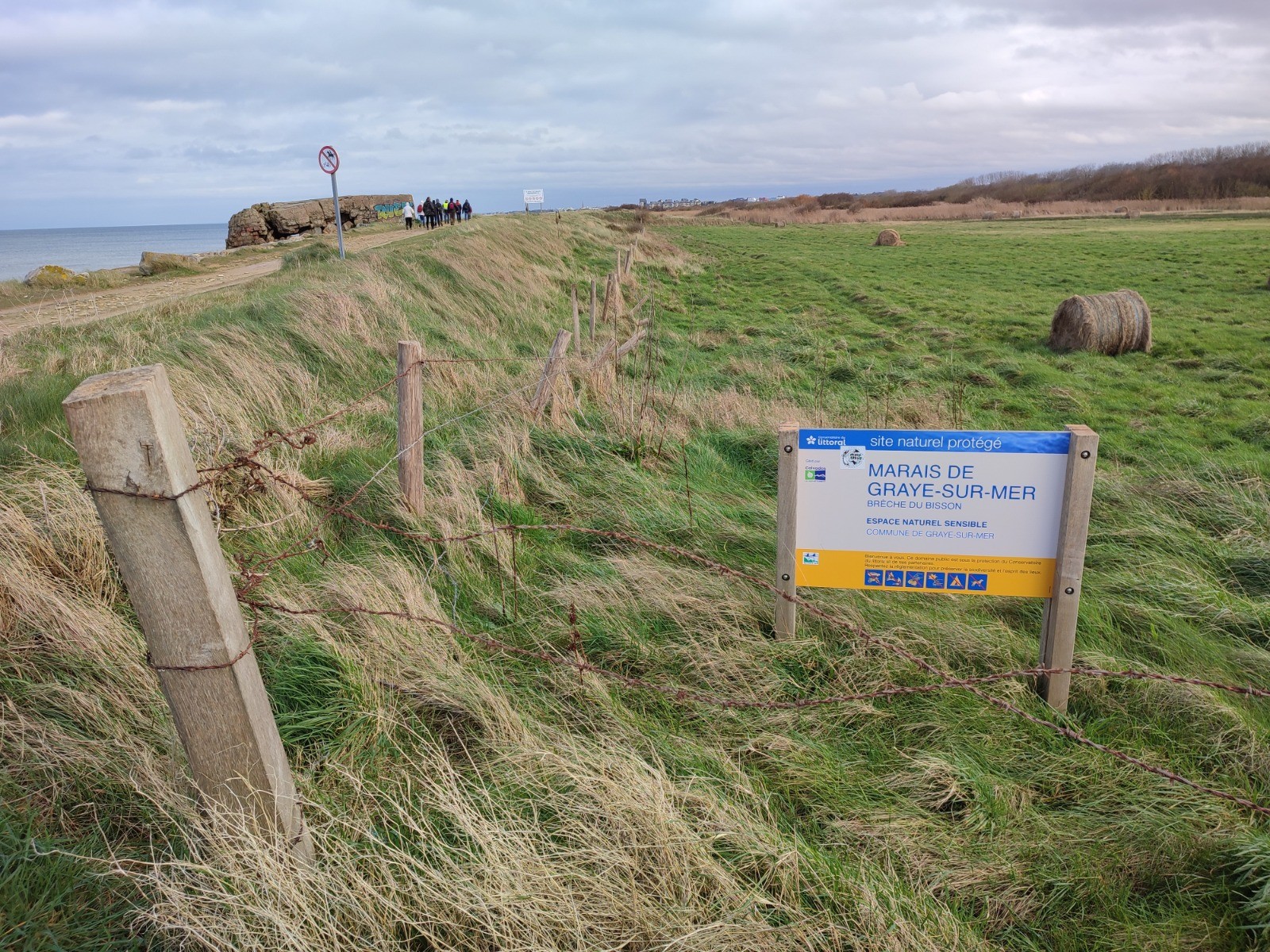 Randonnée pédestre de 8 km 5 au départ du parking situé en face du char de Graye sur Mer. Le circuit longe la côte entre Ver sur Mer et Courseulles sur Mer sur 3 km et la vélo-maritime.