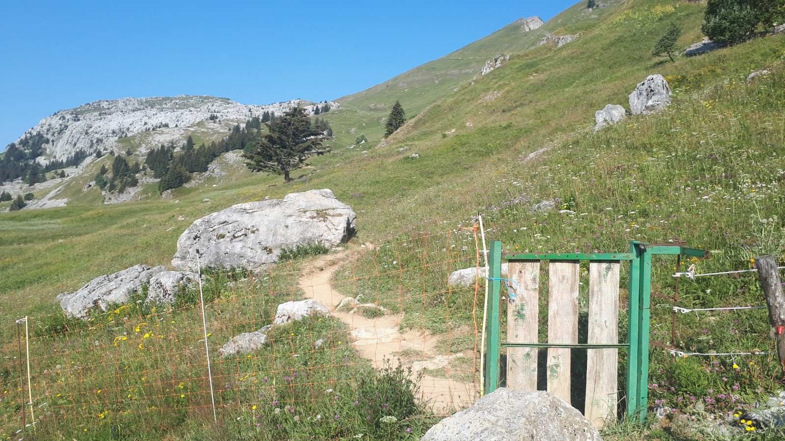 Descente : redescendre jusqu'au col du Rasoir et là, il faut descendre la combe qui au début est très raide et instable. On arrive droit sur le col de la Colombière.