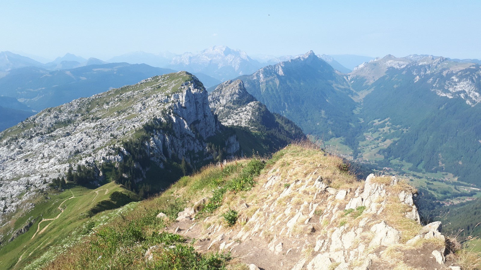 Montée : Par l'Aiguille Verte 2045m, puis descente jusqu'au lac de Lessy 1740m avant une remontée au col de Sosay 1919m. La montée jusqu'au col du Rasoir est raide. Ce col perché entre le Jallouvre et la Pointe Blanche est de toute beauté ! La dernière partie pour atteindre le sommet est plus impressionnante que difficile...sur terrain sec !