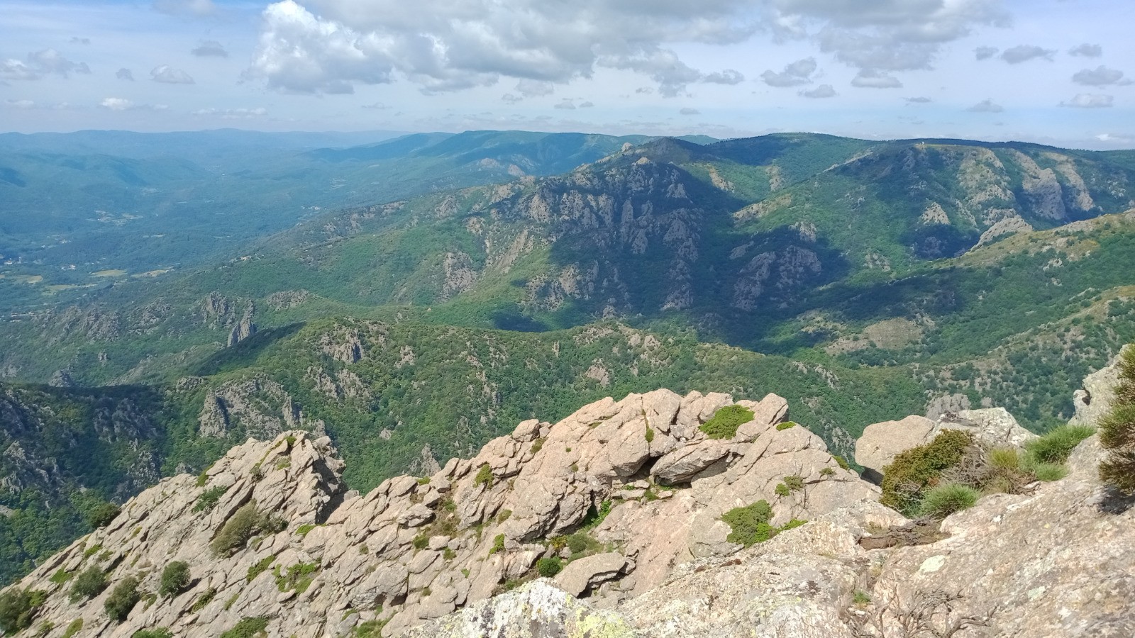 Le Caroux au départ de St Martin de Larçon. On commence par une montée raide, la piste des aiguilles en montée et descente, le final de la montée par la piste sup. du Rieutord pas facile ça monte dur. La descente l'Esquino d"aze ou la vire de la roque rouge très escarpés pas pour tout le monde.