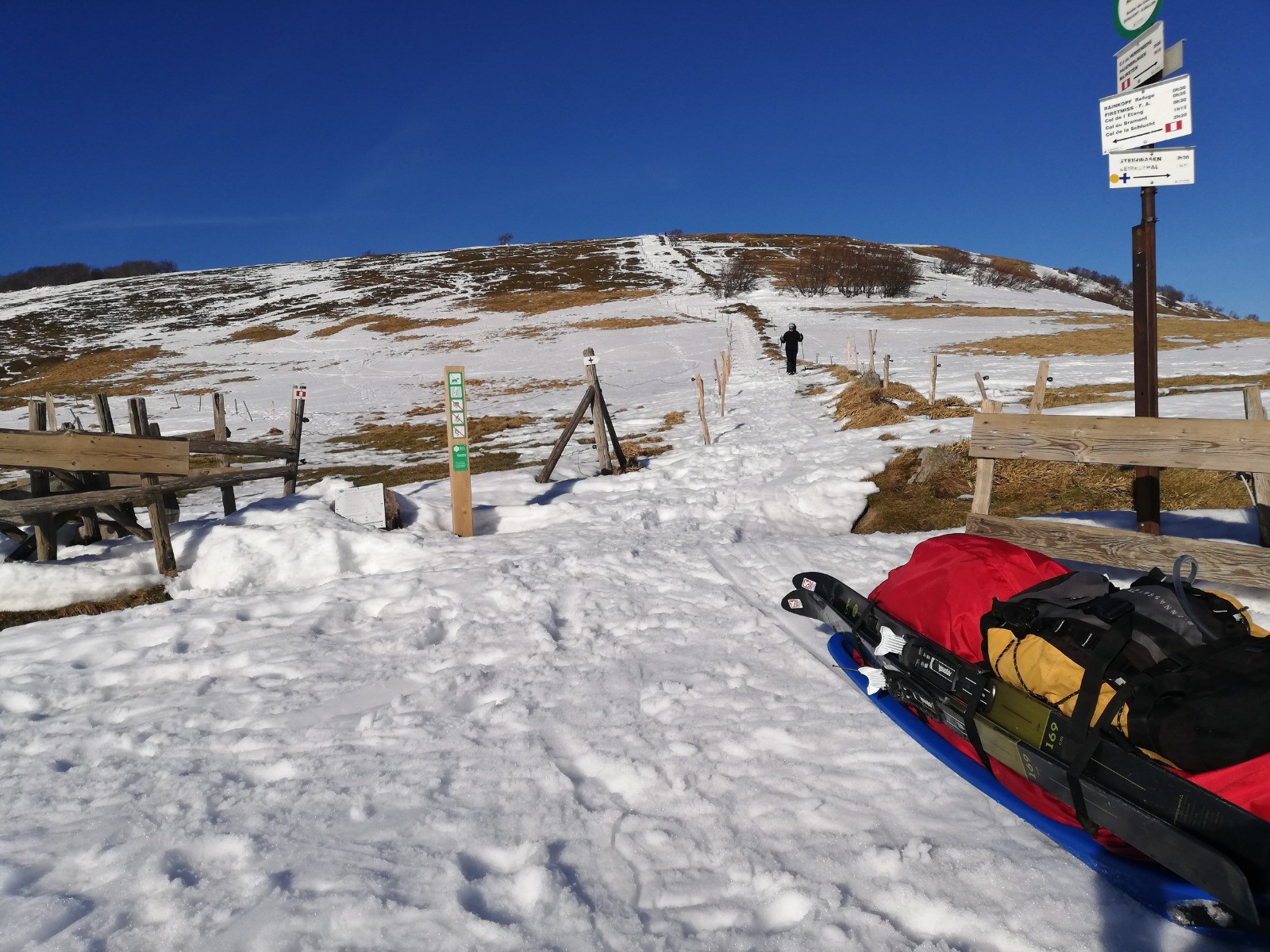 2.Itineraire parcourant une partie des cretes des Vosges. Une boucle vers le nord depuis le col de la Schlucht, puis vers le sud. Realise en 4 jours, avec 1 bivouac, 1 nuit au refuge CAF des Trois Fours et 1 nuit dans une cabane entretenue par le Club Vosgien. Passage par plusieurs sommets caracteristiques des Vosges, Gazon du Faing, Hohneck, Rainkopf, Rothenbachkopf. Accessible et realise avec une pulka. PArcours sans grande difficultes, variable selon l'enneigement et la durete du manteau neigeux. Peaux de phoque indispensable pour les skis.