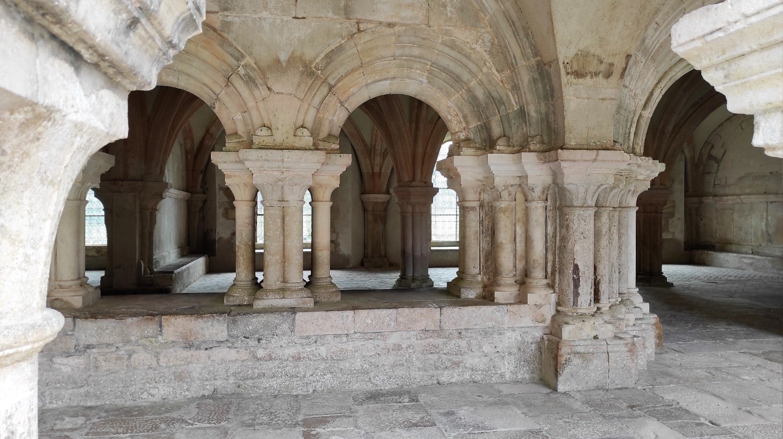 Encore 60 km aujourd'hui, dont une partie sous la pluie, enfin surtout pour la visite de l'abbaye de Fontenay.