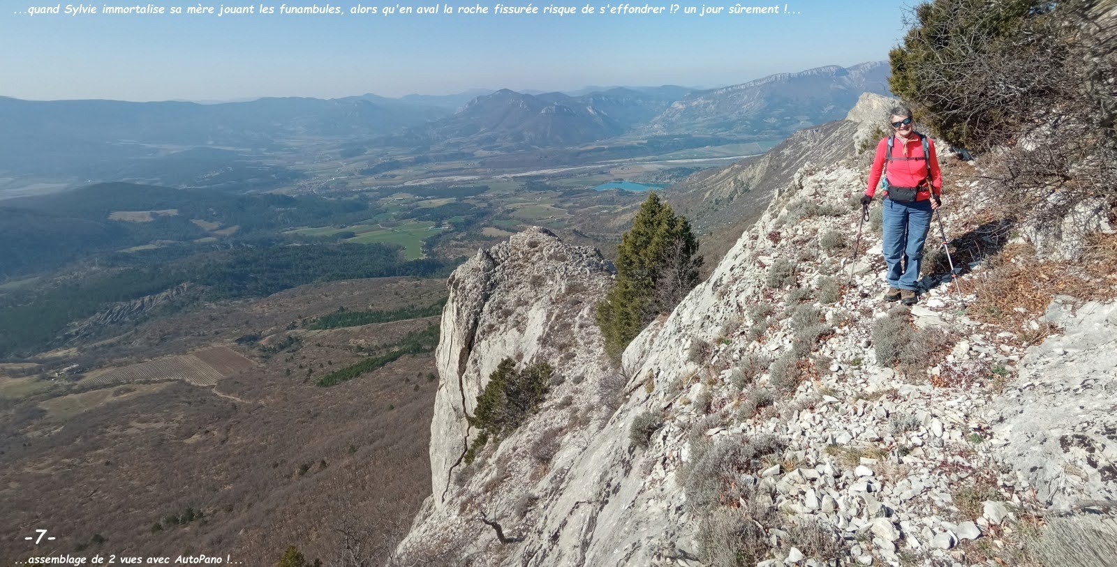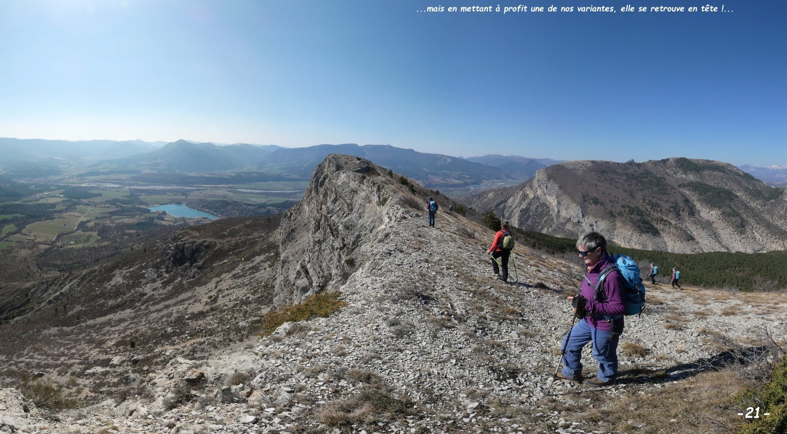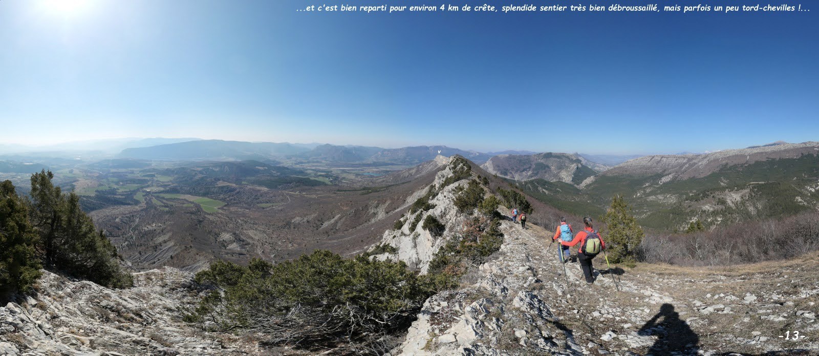 J'ai profité de cette aubaine et de ce que ma fille Sylvie, nouvelle résidente à Laragne, soit en congés pour l'inviter à se joindre à nous et comme en pareille circonstance la Marmotte et l'Ours ne sauraient renoncer à quoi que ce soit, non contents d'assurer mon transport, nous sommes passés par Laragne pour un complet covoiturage; que demander de mieux puisque nous avons été gâtés par la météo même si le courant d'air sur la crête était assez vivifiant et malgré tout l'horizon encore un peu trop laiteux à notre goût, jamais totalement contents ces Hauts-Alpins !!!