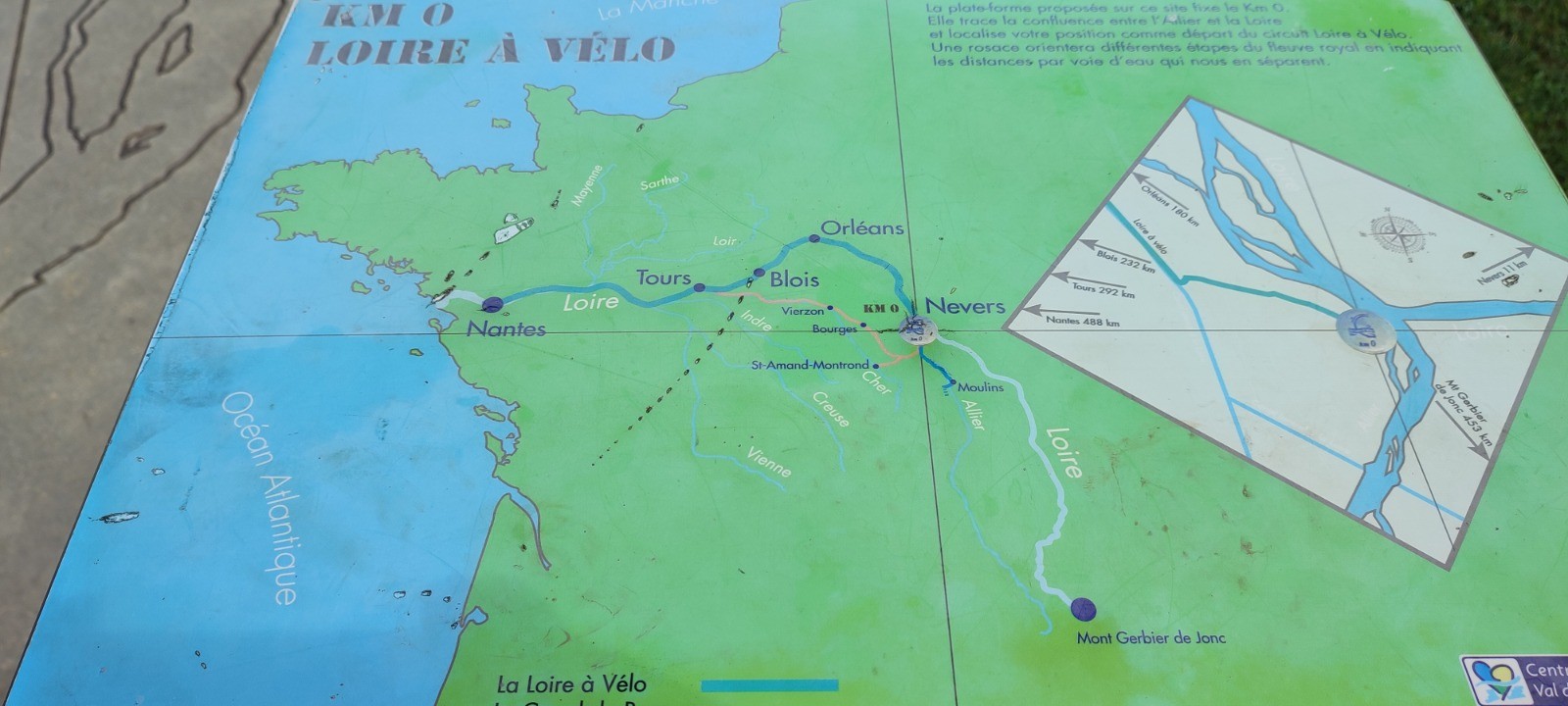 On commence par suivre l'EV6 jusqu'au bec de l'Allier après avoir passé, le pont canal de Guerrin. On l'a quitté alors, on passe à l'écluse des Lorrains que je connais bien, puis le village musée d'Appremont sur Allier. Après c'est la campagne avec les troupeaux et de toutes petites routes. Pas croisé plus de 5 voitures en 45km.