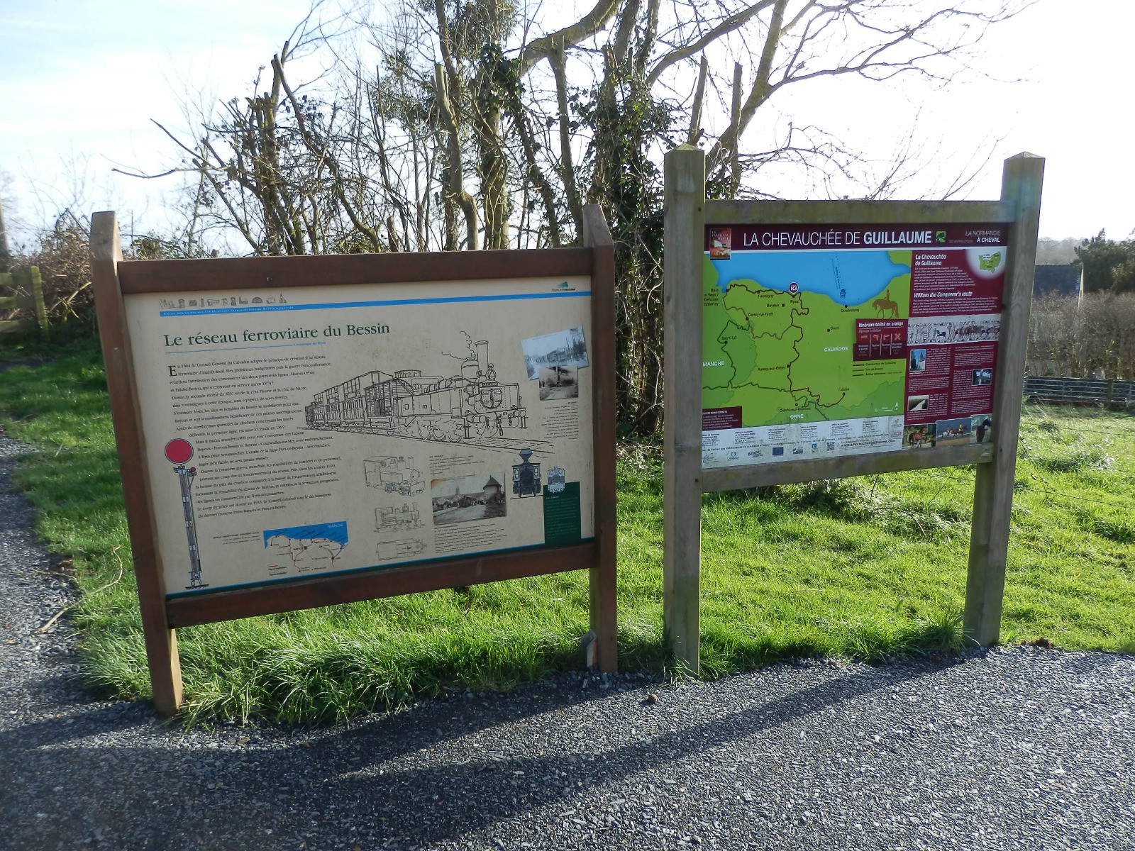 Belle randonnée pédestre de 8 km au départ du parking de la mairie de Ryes. Le circuit longe la rivière de La Gronde qui se jette à Asnelles. Retour par les Monts de Ryes et le long de l'ancienne voie de chemin de fer qui allait de Ryes à Arromanches.
