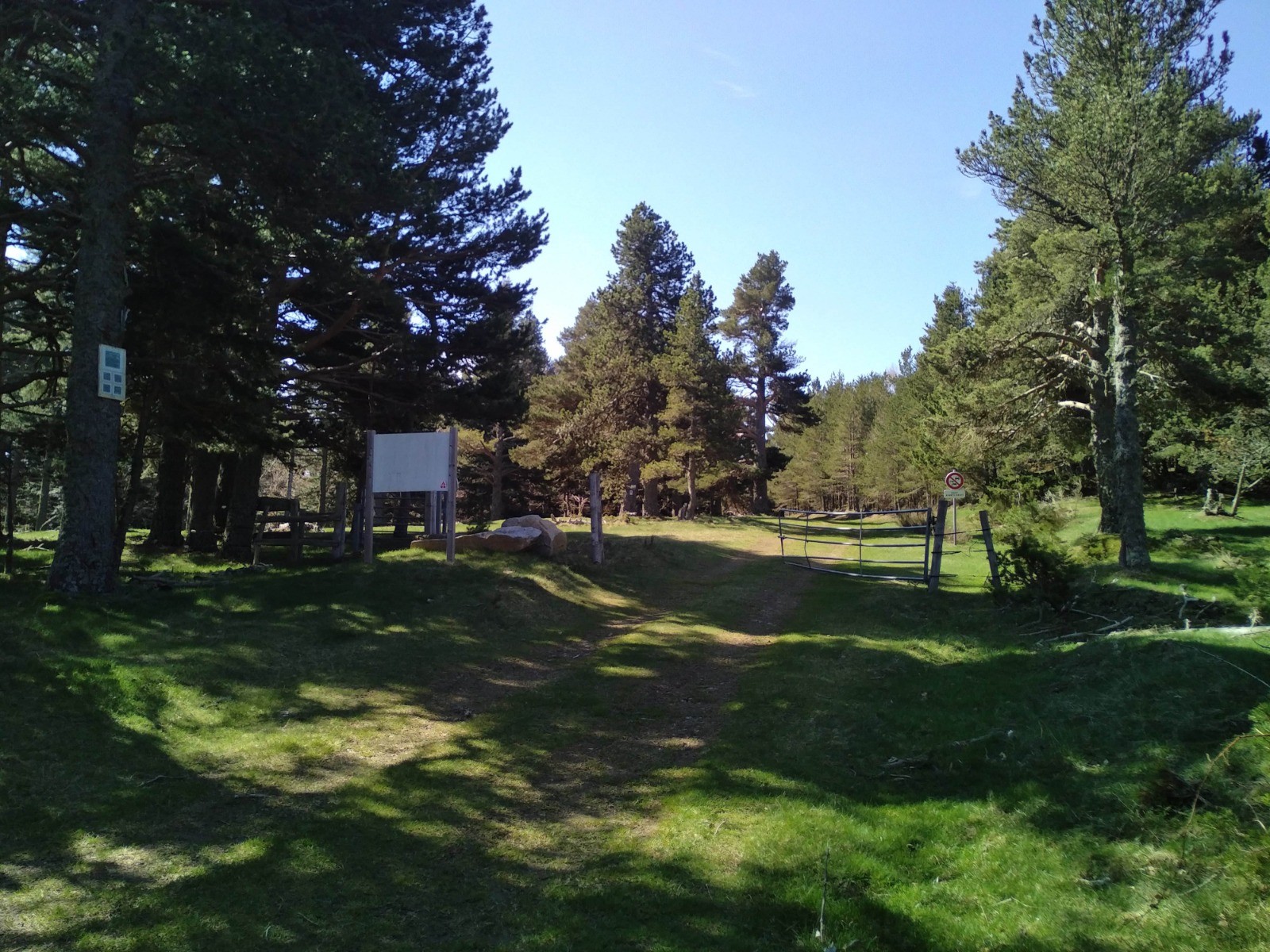 Arrivés au col prenez la piste à gauche et faites 2 km sur cette piste qui est aussi celle du circuit VTT du tour du Madres-Coronat (balises),passez au-dessus du refuge du Caillau en restant sur la piste de VTT du Madres-Coronat. Montez sur 200m jusqu'au lacet suivant et descendez sur la trace qui, 50m plus bas, reprend la piste horizontale. C'est le seul passage raide du parcours