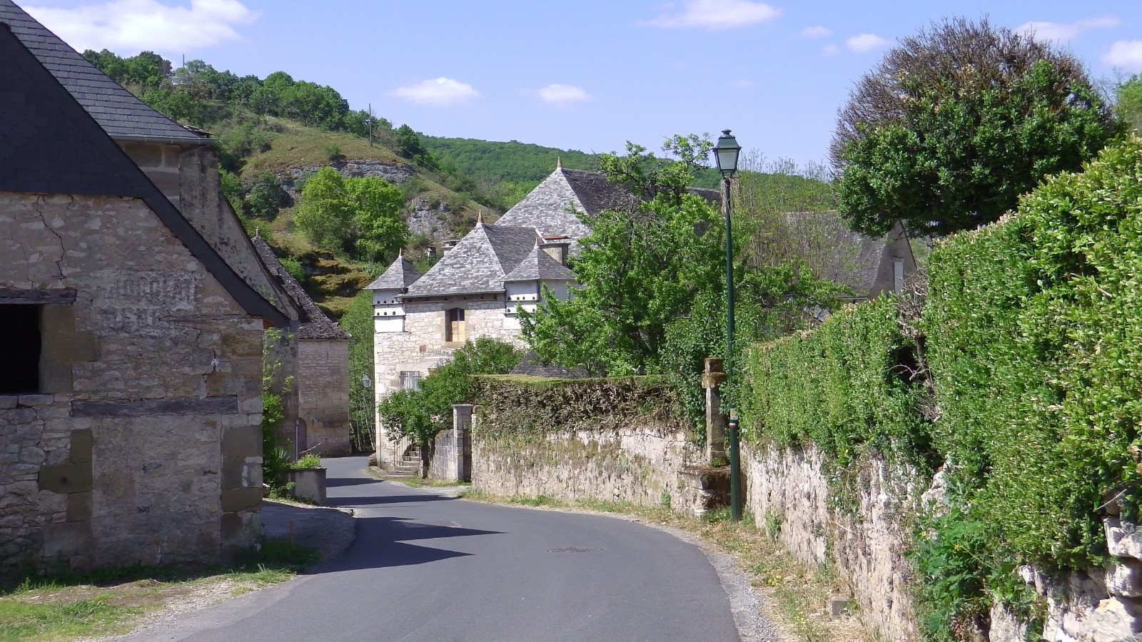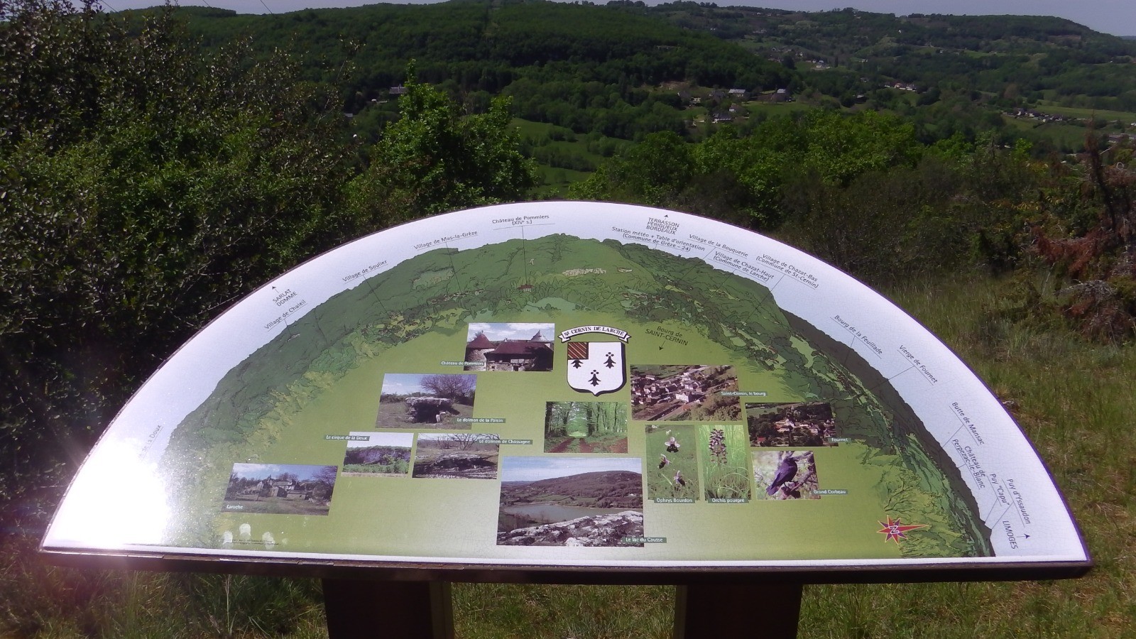 Remonter le ruisseau et avant une dernière maison, prendre à gauche le petit chemin qui monte vers le plateau en longeant une vigne (très particulière). Une fois sur le plateau, après Le Peuch, on prend le Gr Pays. Les chemins sont parfaits, maisons et petits châteaux se succèdent. Un peu avant Fournet, prendre à gauche pour remonter vers le plateau : à gauche, on monte au niveau de la haute tension, sur la droite il y a une table d'orientation, redescendre et prendre le chemin qui part à gauche si on redescend (sinon à droite si on monte) pour arriver à la vierge qui domine Fournet.