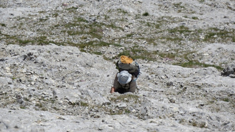 3. Une fois la partie escalade terminée, le troisième tronçon en éboulis jusqu'au sommet du Tapou n'oppose aucune difficulté.