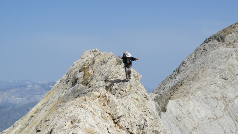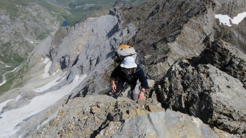 Le reste du parcours est évident, il n'y a pas de difficulté particulière à par le fait de mettre les mains de temps en temps. La crête jusqu'au Pic Central est élégante et aérienne. Poursuivre jusqu'au col de Cerbillona se fait en marchant.