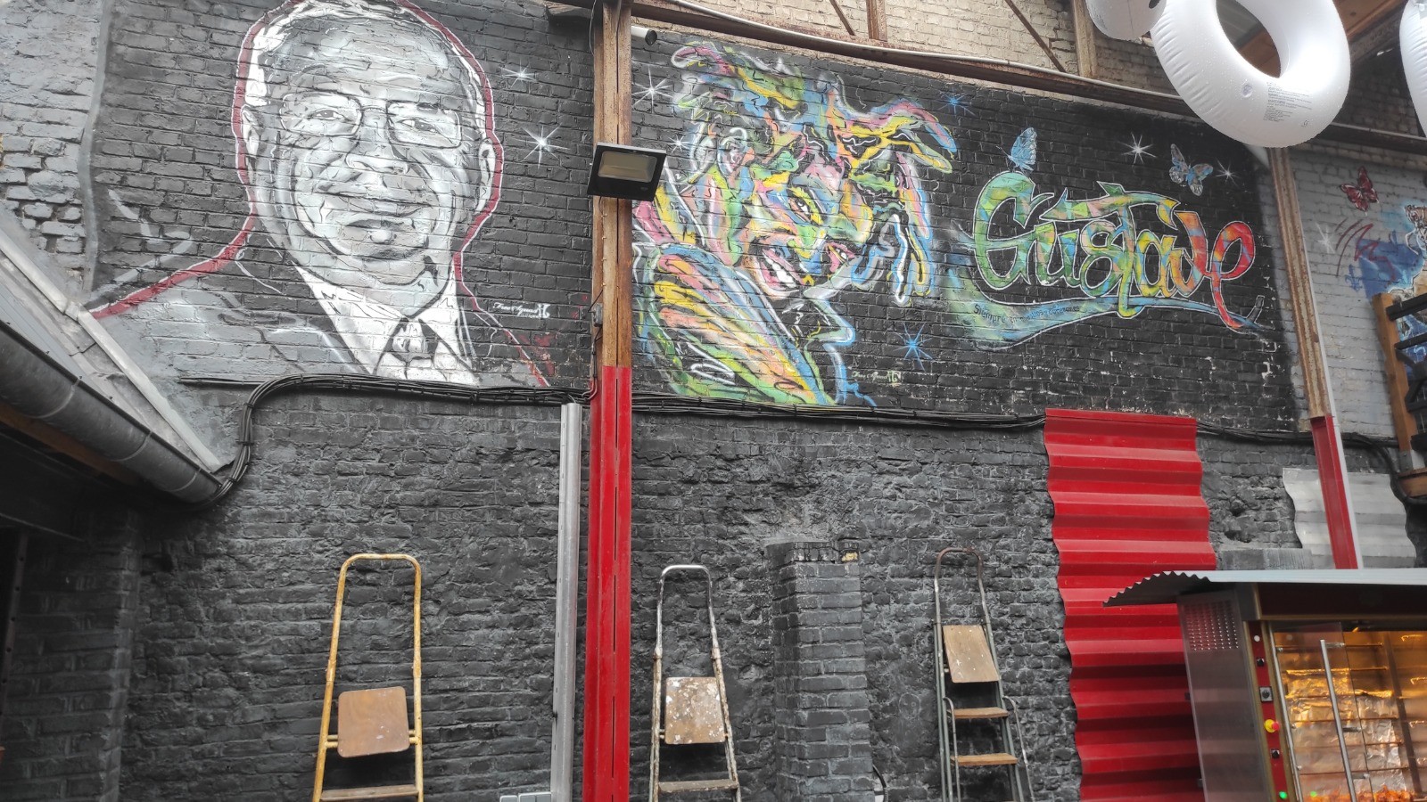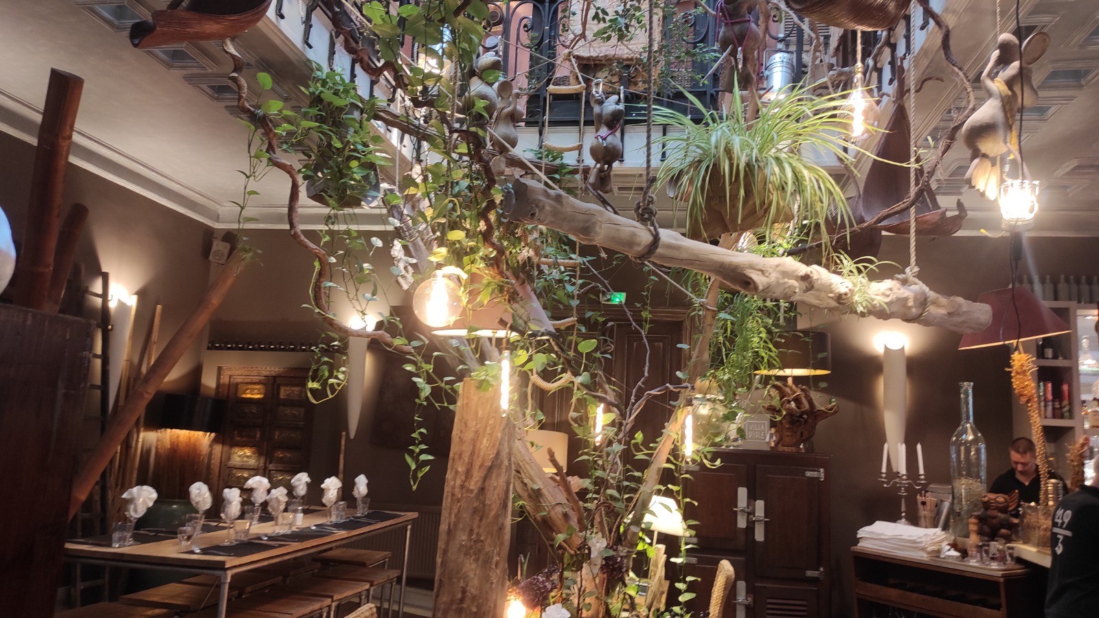 Il pleut. On va entre deux gouttes manger à St Quentin. Par hasard nous tombons sur un super resto à la déco magnifique.