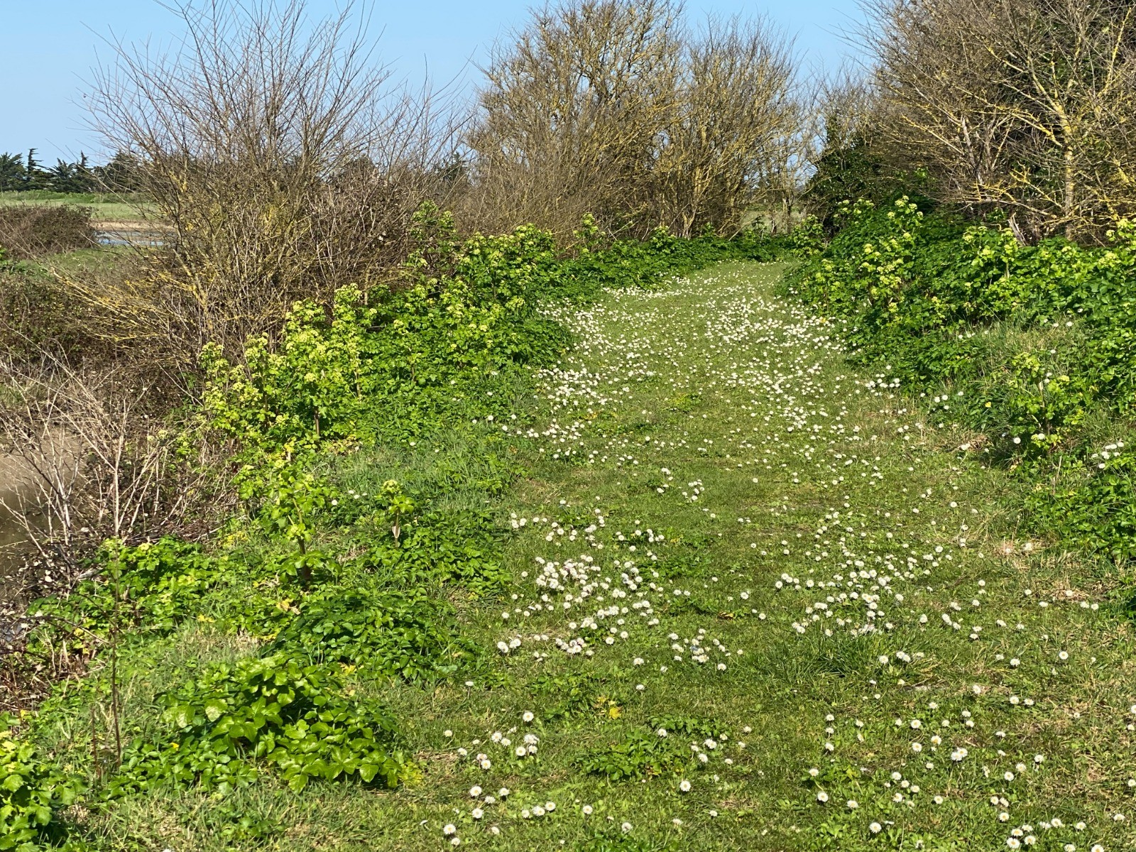 Les chemins herbeux sont tapissés de pâquerettes ( photo no 8 ).