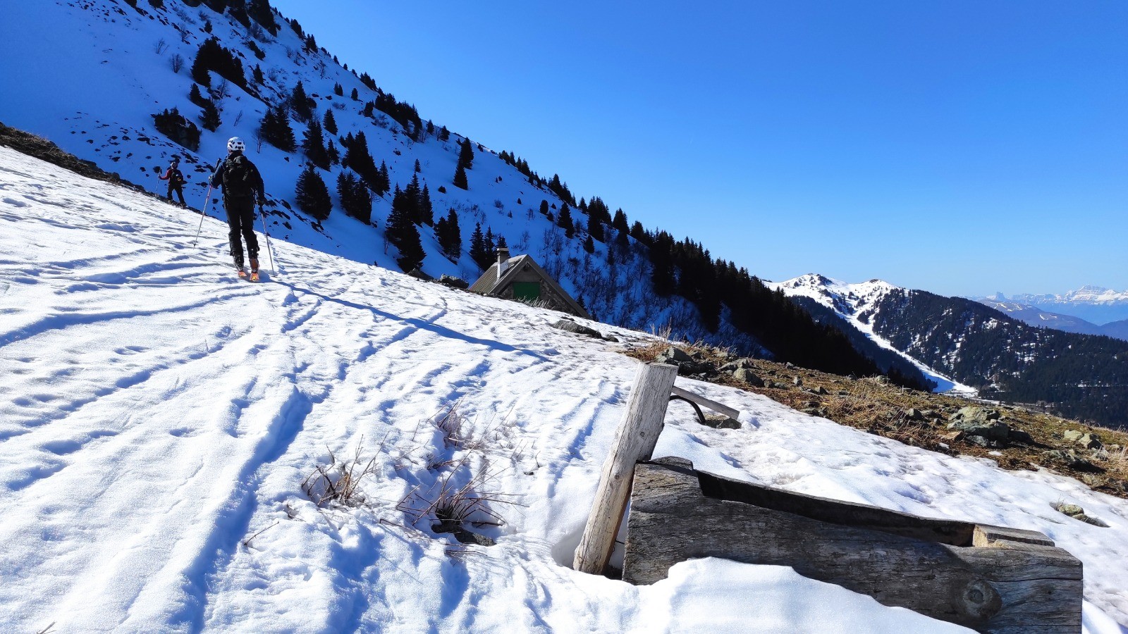 La descente est en très bonne condition. Pas de poudreuse, mais une neige qui accroche bien.