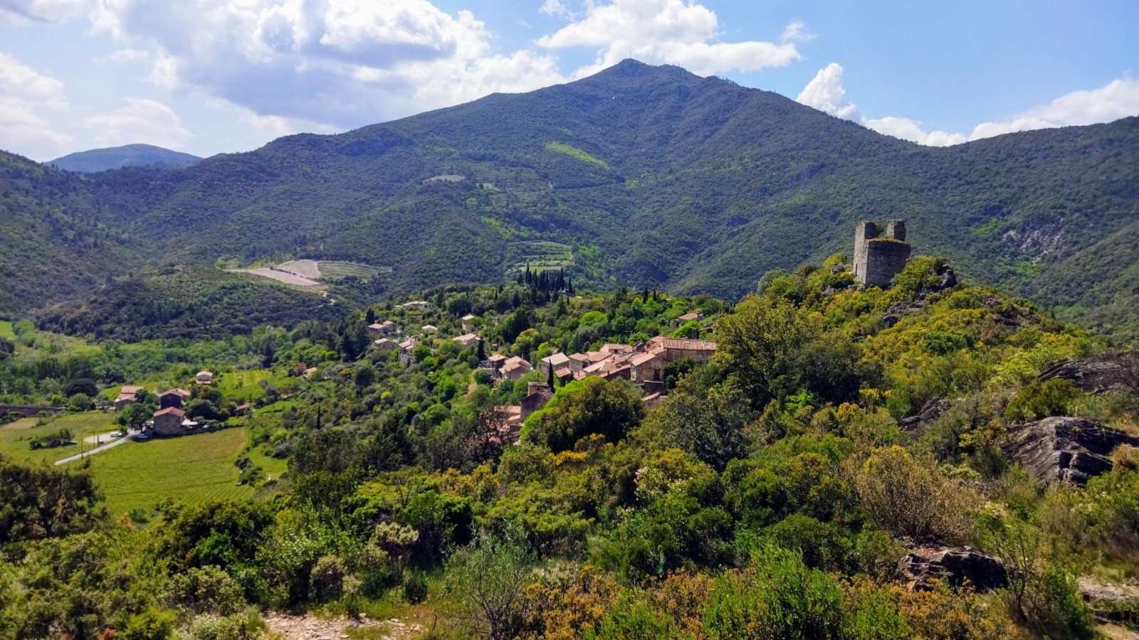 Superbe rando, à réserver aux bons marcheurs, au départ du très beau village de Vieussan, avec pour point culminant la magnifique tour du Pin, partiellement en ruine, qui permet une vue à 360° sur l'Espinouse et le Caroux d'un côté, et sur l'Orb et la plaine biterroise de l'autre.