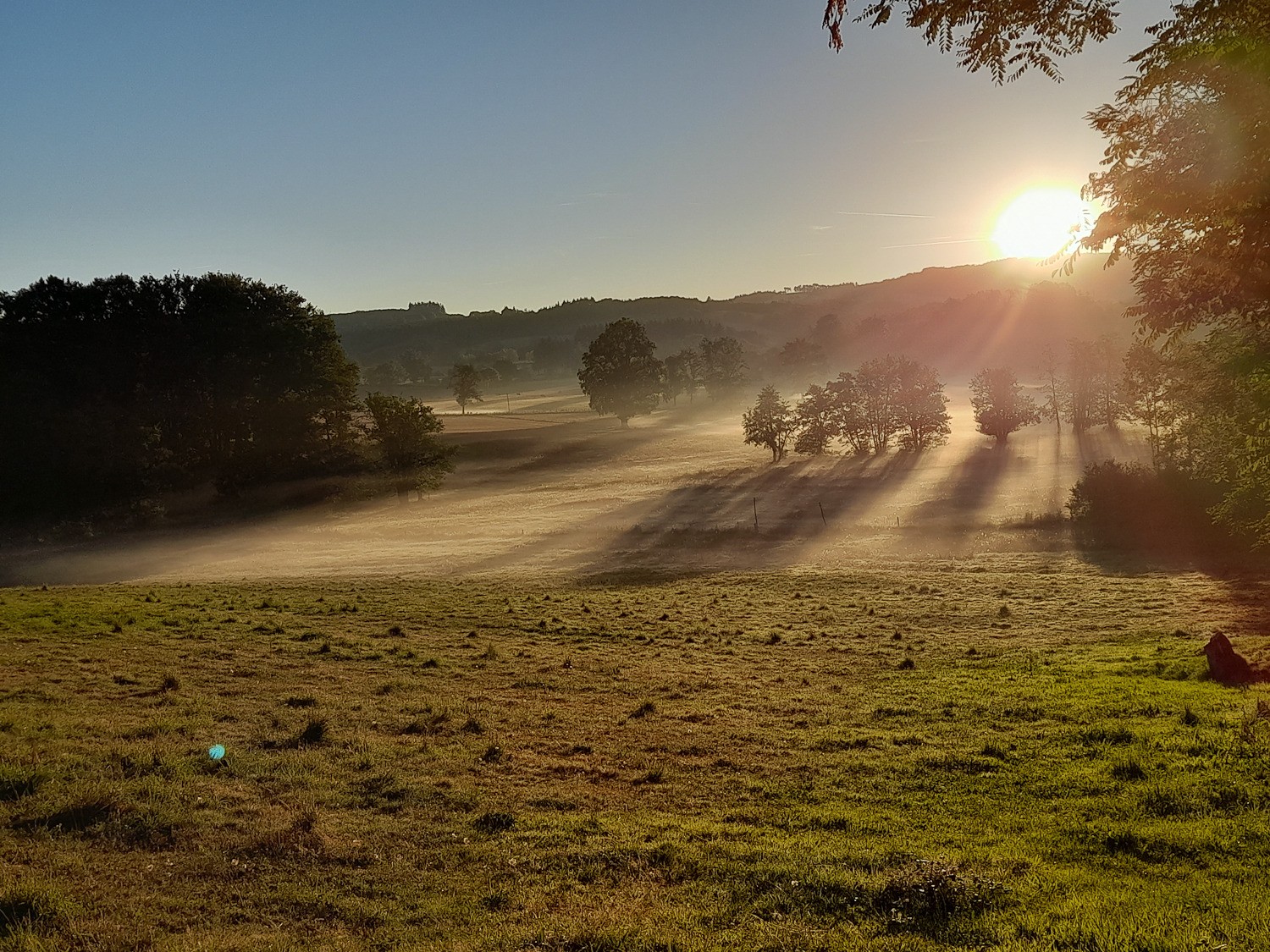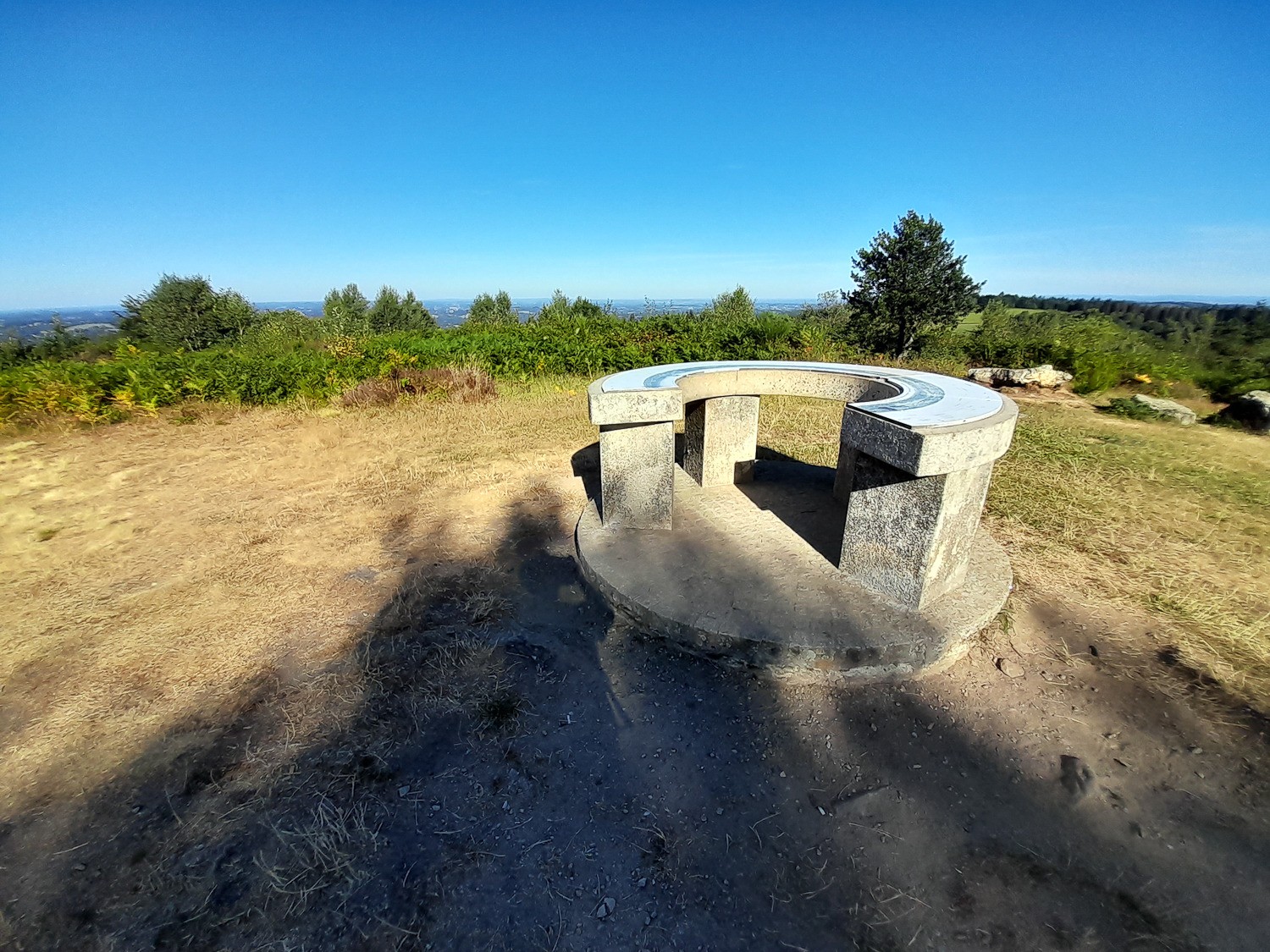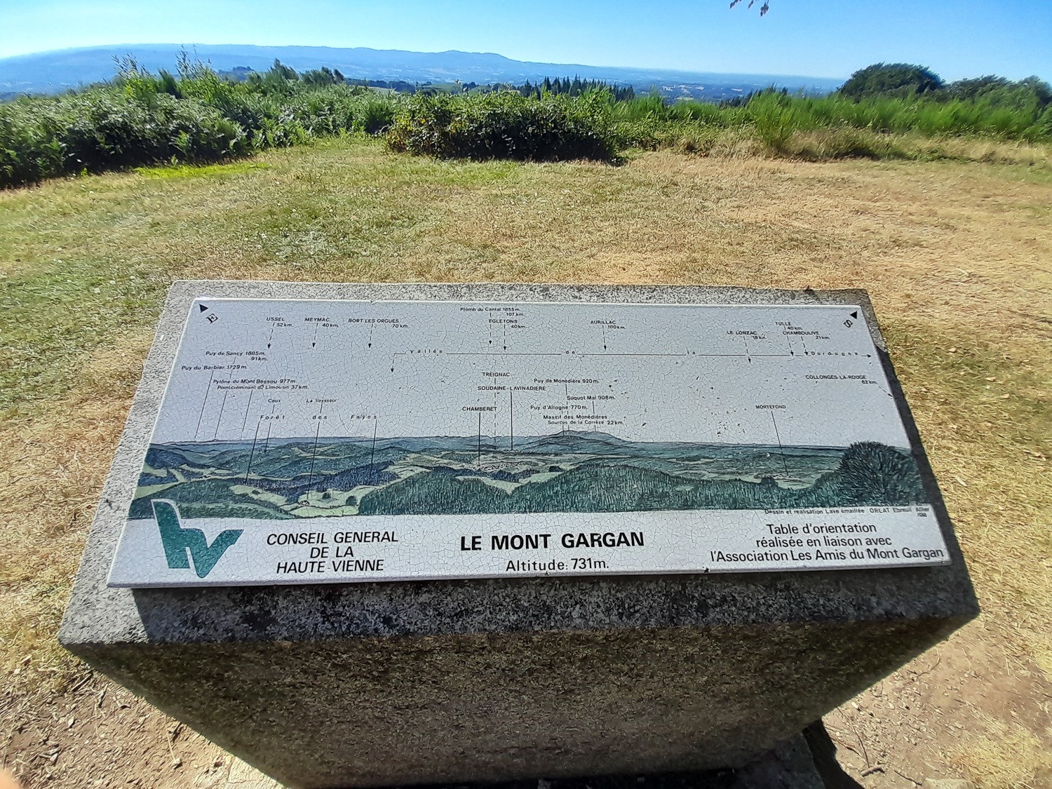 Bonjour, à 7 heures sur place, à la fraîche. Dès le départ, voulais m'improviser mécanicien, mais... quand même. Le lever de soleil au travers des arbre, valait la peine de se lever tôt, pour se retrouver sur la toile. De beaux chemins et paysages accompagnent la montée vers la chapelle. Un panorama d’exception avec deux tables d'orientation et haut lieu de la résistance limousine.