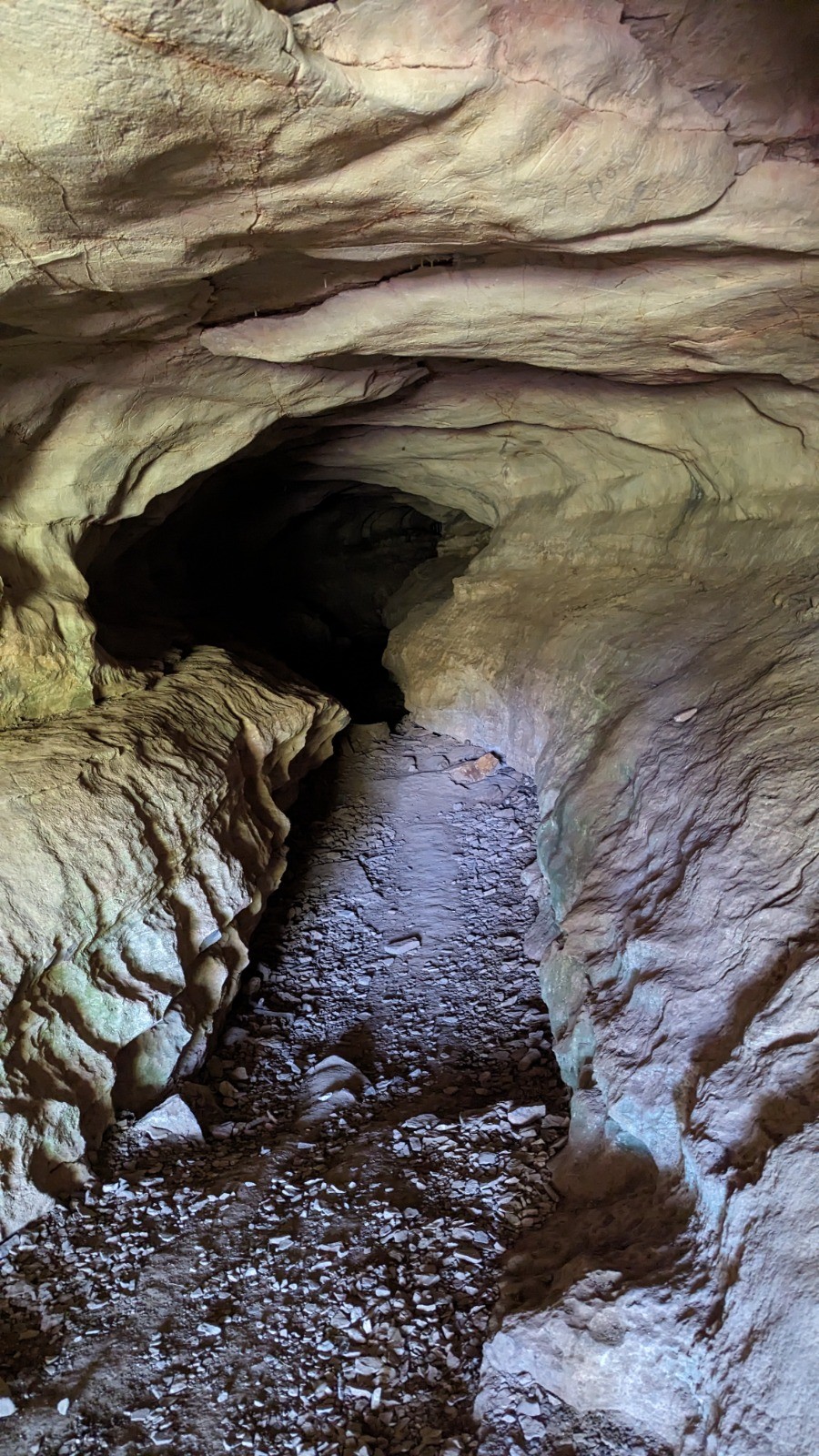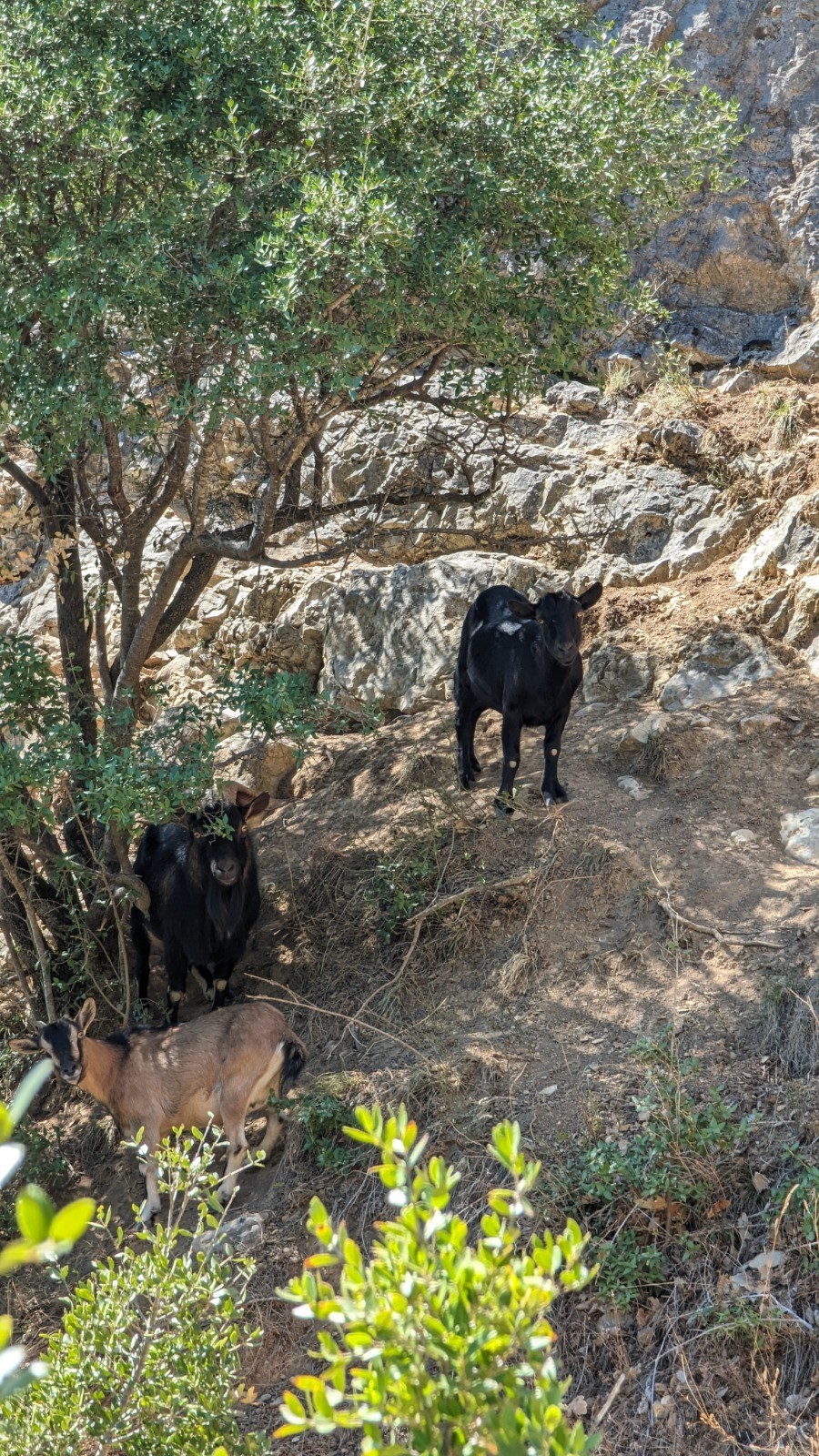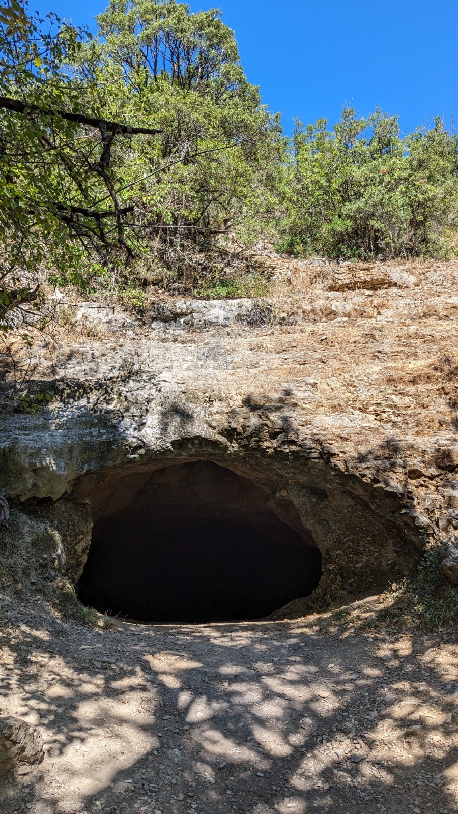 Parcours que j aurais aimé faire avec le Levo, bien tracé, caillouteux, terre foncée, Le but de la rando était d'explorer la grotte de la Mayrière, longue de 350m, à la température agréable et peuplée de quelques chauves souris.