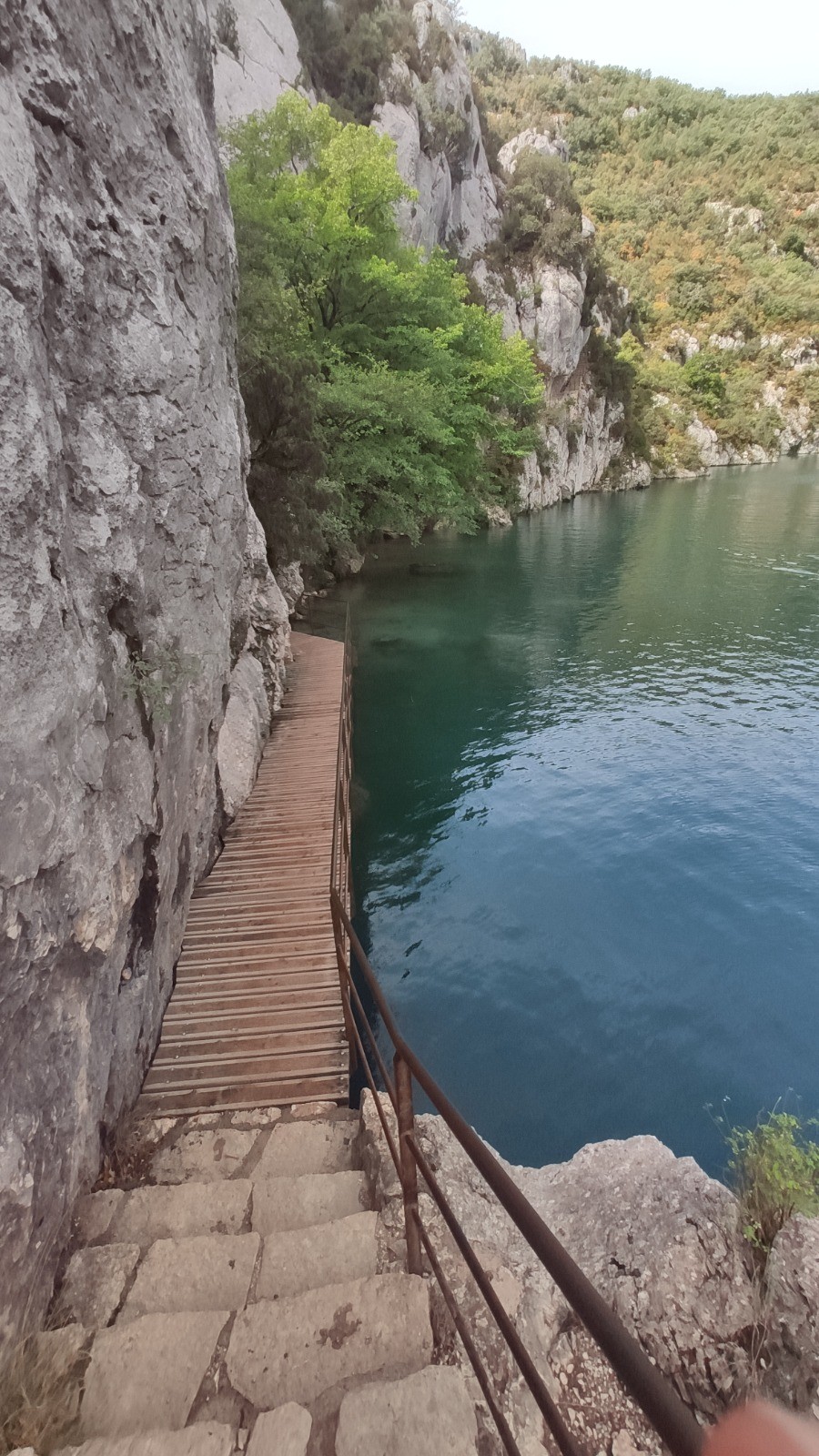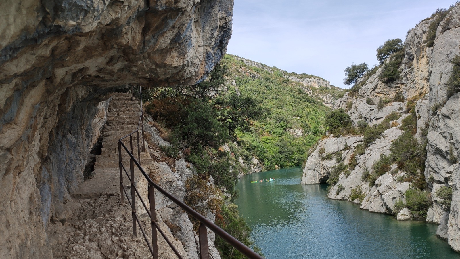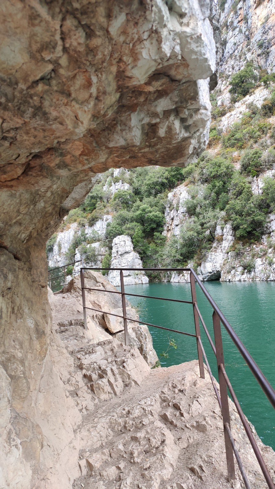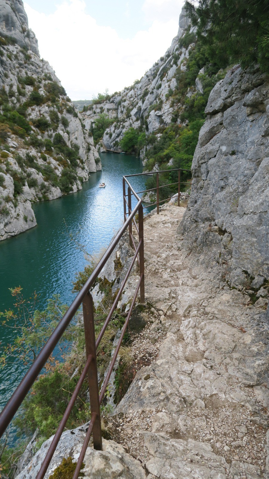 Cheminement bien sécurisé, une 1ère partie le long du Verdon, entre le canal et la rivière superbe, avec parfois emmarchement taillés dans la pierre, passerelles de franchissement .....une 2ème partie dans un tunnel de verdure rafraîchissant, ne pas se dispenser de l'A&R à la Chapelle et ses biques pas farouches. 3ème partie: une descente raide avec des marches en rondins n'épargnat ni les genoux ni les cuisses .... Fin commune avec le départ pour profiter encore des basses-gorges. A noter l'éclairage du smartphone suffit pour les 120m du tunnel