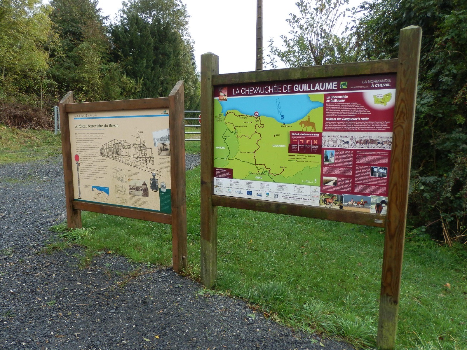 Belle randonnée de 8 km au départ de Ryes. Le circuit longe sur 1 km l'ancienne voie de chemin de fer qui reliait Ryes à Arromanches. Belles vues depuis les monts de Ryes sur la plaine et la côte. Le parcours longe la rivière La Gronde qui se jette à Asnelles. La gare de Ryes se trouvait en face la mairie et la gendarmerie.
