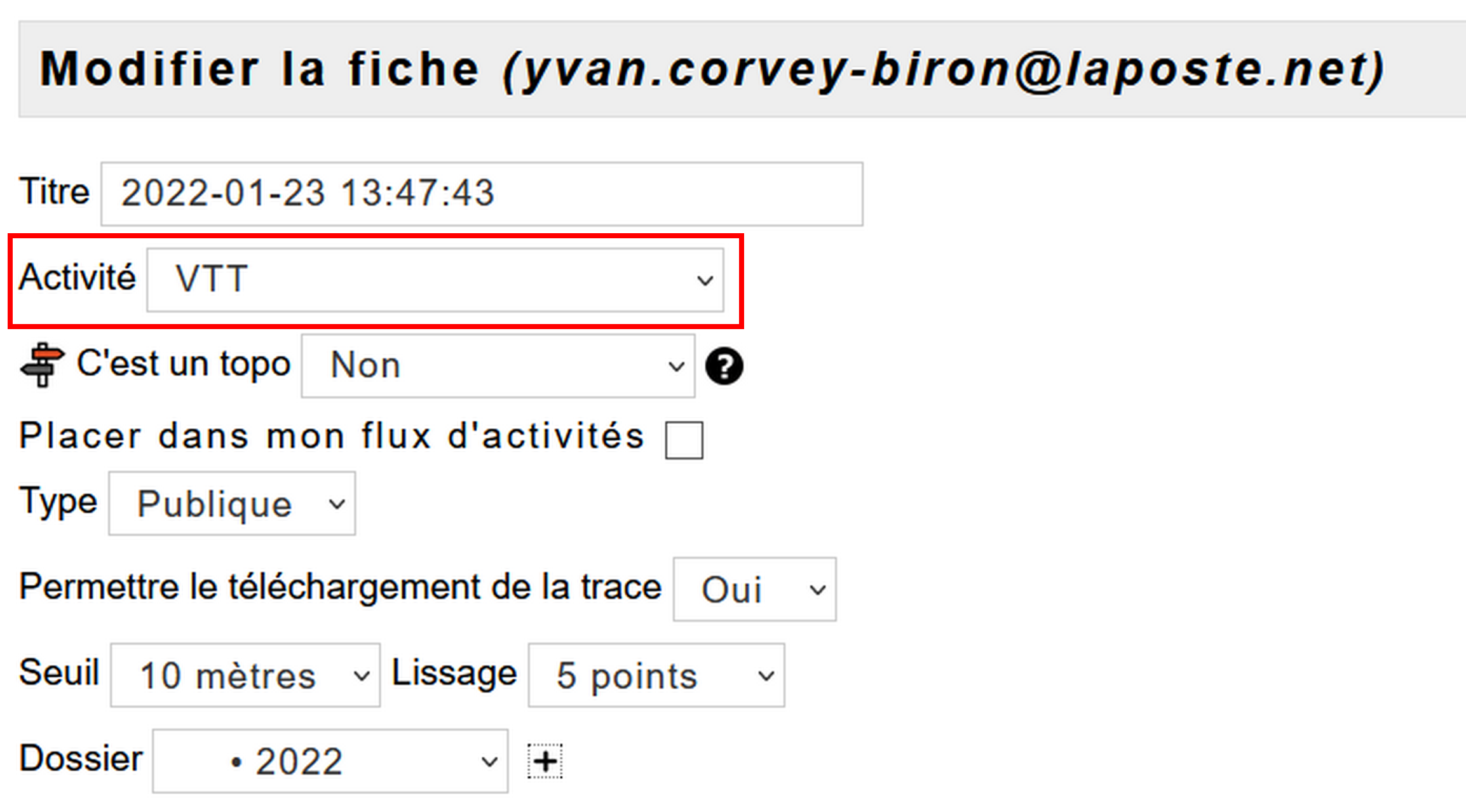 Il serait peut être intéressant d'intégrer une fonction de remplissage automatique du champ "Activité" de la fiche d'un tracé lors de l'upload d'un fichier GPX.