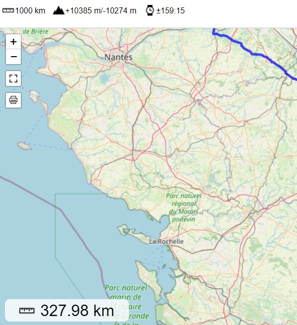 [315 posts] - Le 03/02/2022 22:40Admin a dit :Ok, je n'ai pas ajouté les bornes kilométriques, mais directement la distance depuis le début de la trace (active), qui s'affiche à la place des coordonnées en bas à gauche de la carte !