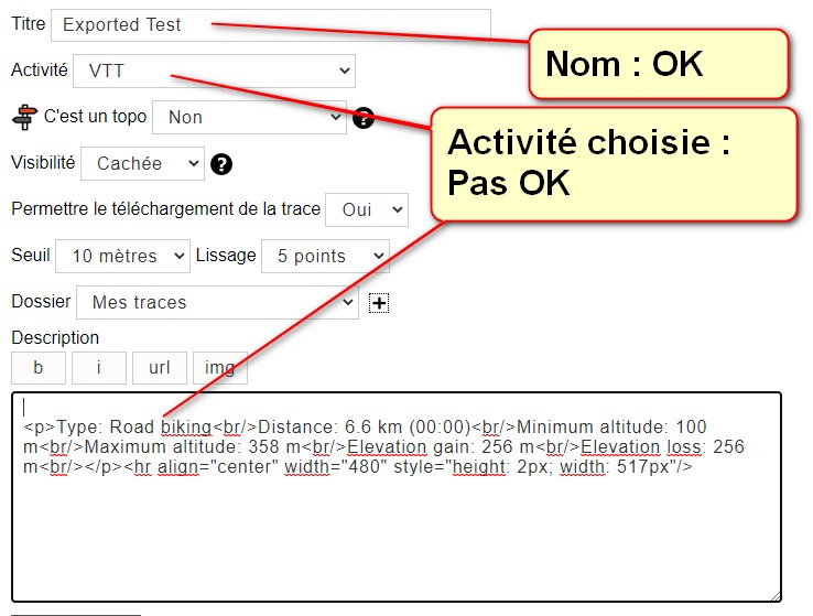 Je viens de me rendre compte qu'en passant par "Visualiser une trace" un type d'activité est directement choisi, mais ce n'est pas le bon.
