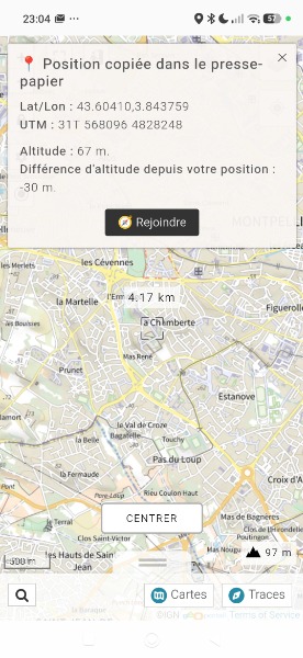 Ça ouvre une fenêtre, celle qui copie les coordonnées du point, et en bas il y a une icône Boussole + texte rejoindre.