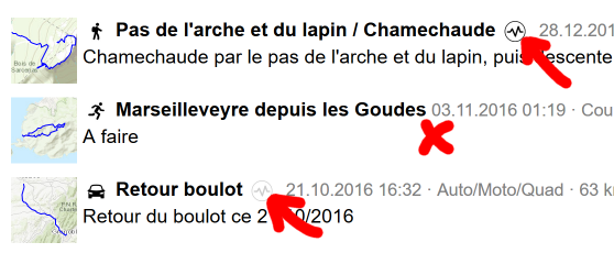 1) différencier les traces stockées sur VisuGPX : ne pas mélanger celles qui résultent d'une activité (le nom est bien choisi) des autres (projets, tests, etc.