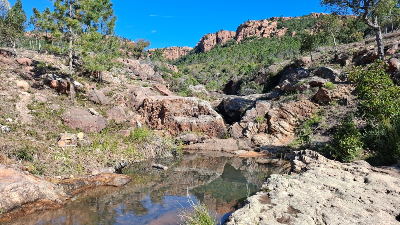 Retour dans le secteur de Baume Rénaude, cette fois en version courte. Modification de l'approche pour aller à l'étang. Egalement sur le retour pour éviter la longue piste monotone. Toujours une randonnée un peu sportive mais très variée ou il faut prendre son temps sur les nombreuses découvertes : Les grottes "Baume Renaude" pas toujours facile à trouver, les ruines du Moulin de Gournié et les très nombreux points de vue.