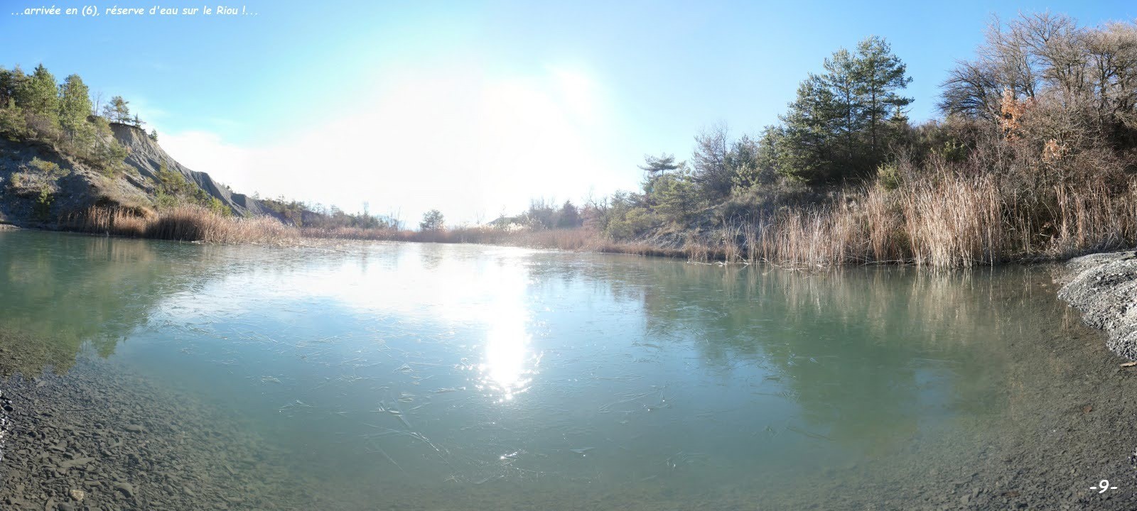 Quand,, beaucoup plus loin et avant Bel Air, nous avons cherché à trouver le départ du sentier en tirets noirs sur la Top 25, tout était privé, voire clôturé, ce qui nous a contraints à un nouveau demi-tour et passage en sauvage par les champs, pour un pique-nique bien abrité et chaud à l'adret de Serre Pierrot avec devant nous cette longue crête marno-schisteuse dont l'élégance sur les photos satellites avait séduit notre Ours toujours en quête d'originalité, et nous voilà repartis le coeur léger, persuadés que nous allions nous régaler. Sauf que nous arrivons assez rapidement sur un mur infranchissable de barbelés : "Propriété Privée Défense d'Entrer" nous obligeant à battre en retraite et à tenter un large contournement plus ou moins scabreux nous faisant passer par une petite retenue collinaire avant de remonter en crête pour à nouveau nous retrouver devant un mur de barbelés, heureusement un peu plus aisé à négocier en s'aidant des arbres pour enfin sortir de cette propriété bien peu accueillante pour les randonneurs et très probablement encore moins pour les Vététistes; si nous avons bien compris, y en aurait-il qui se soient mal comportés pour une telle amertume ? mystère !