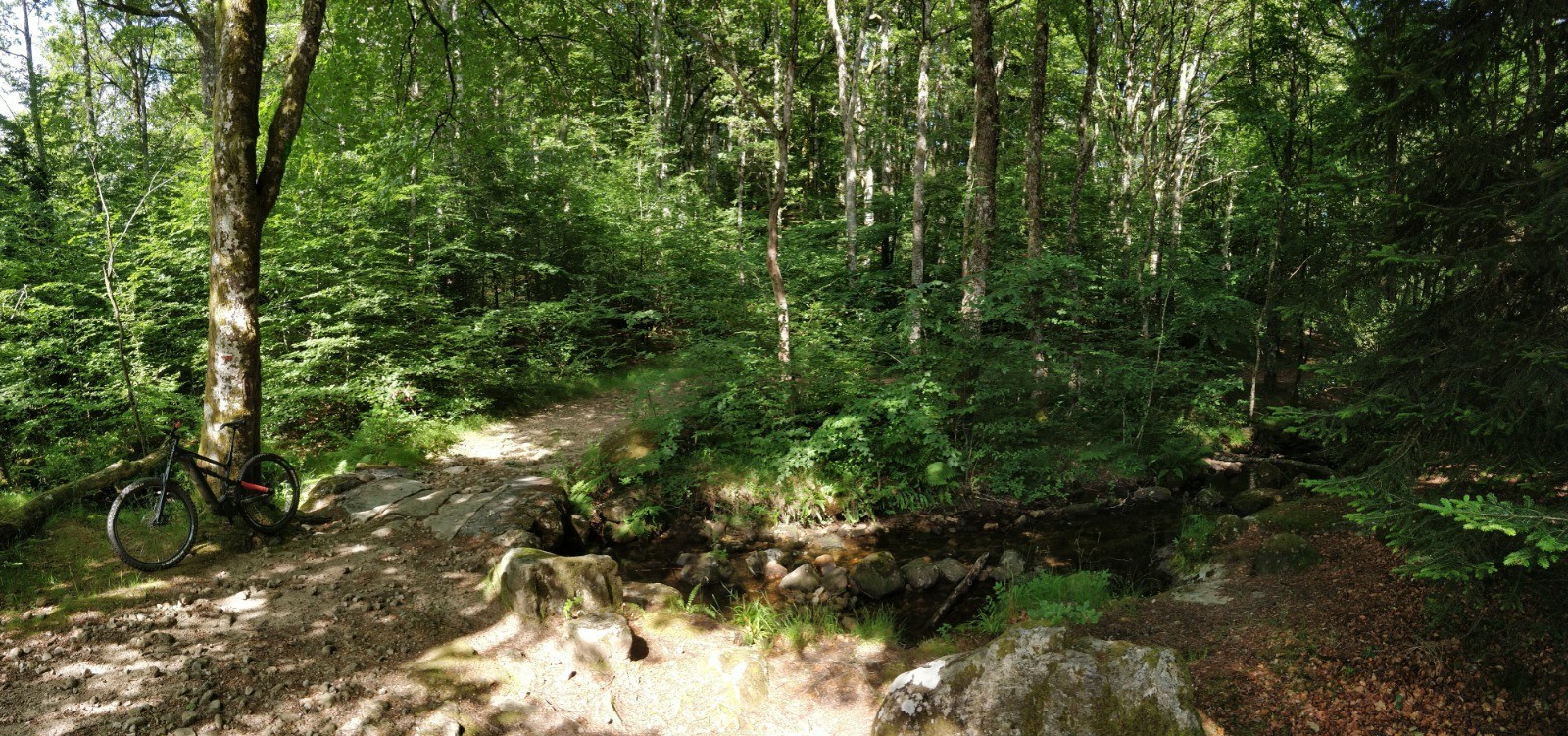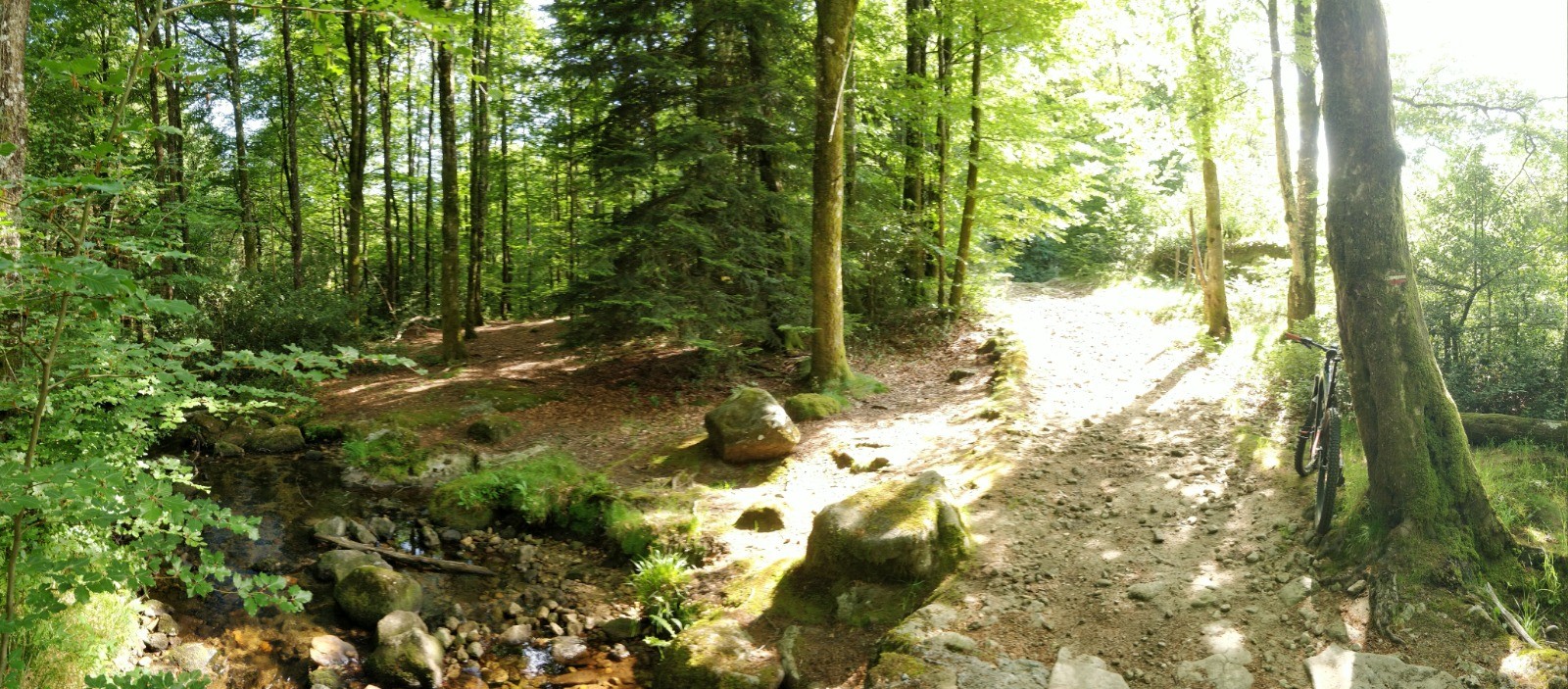 VTTAE et VTT : Superbe trace , D+ réel 550. Essentiellement des monotraces et sentiers dans les foret de douglas . Traversée de qqe hameaux ( Le Viala , Dukerque...) . Parcours tres tres agréable , tres jolie. . Nombreux points de vue .
