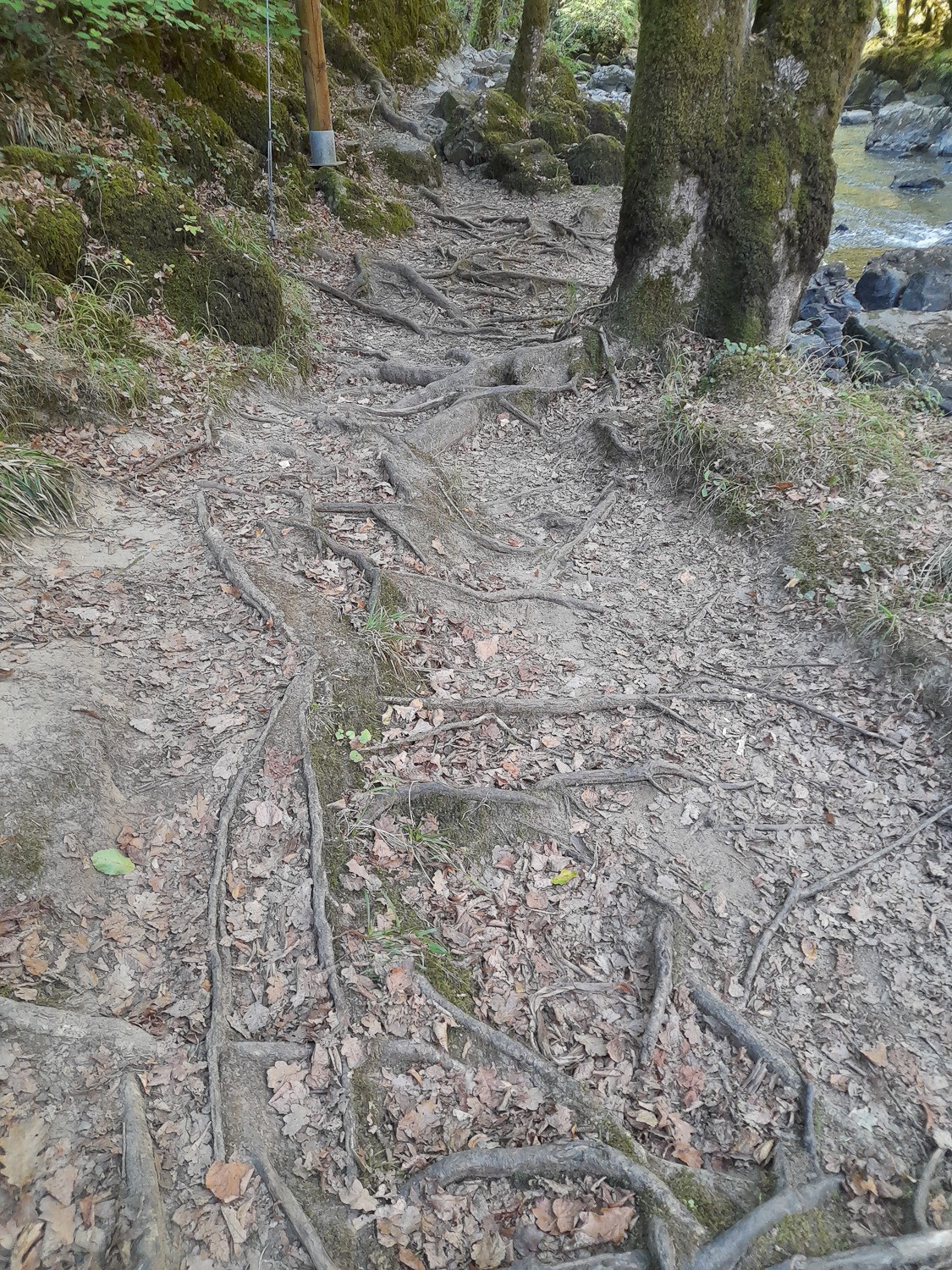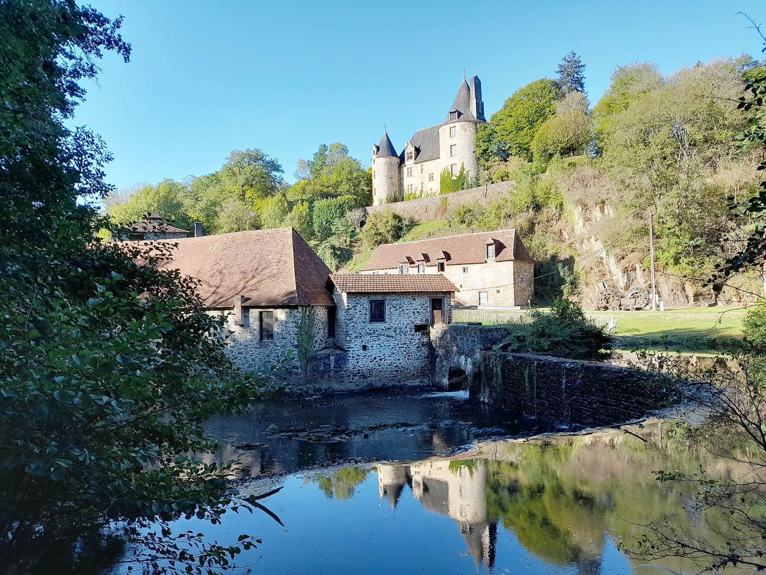 Jour 5 point de départ au pied des anciennes forges de Savignac avec quelques reflets sur l'écluse. Quelques pas nous dirigent vers la rivière, une descente prévue sur un sentier bien pavé, un tête en l'air 😴est passée ailleurs. Un lit de torrent sur lequel ai apprécié les cordes, qui débouchent sur la première passerelle. Une fois franchie, les bords de rivière, ses rocaille et racines vous guident vers les sommets⛰. Une roulotte vous invite à la pause, une petite église au passage et on redescend sur les sentiers de rocaille, excellent massage de chevilles😅. La belle cascade est au bout des cailloux. Deuxième passerelle et on remontent évidement sur la caillasse et là pas de corde🤣. La chienne toujours devant, ai fait comme elle, à quatre pattes😅.