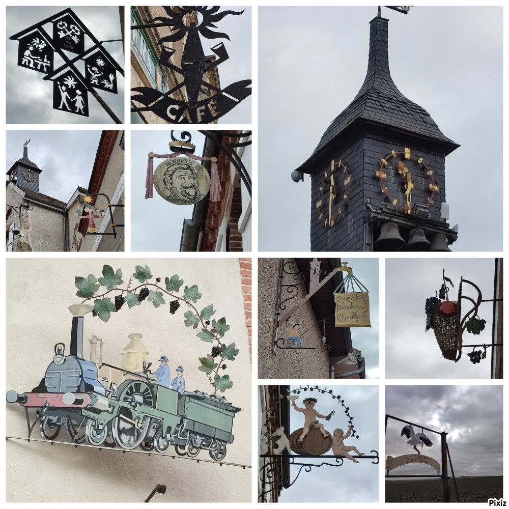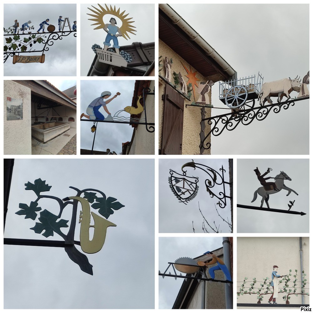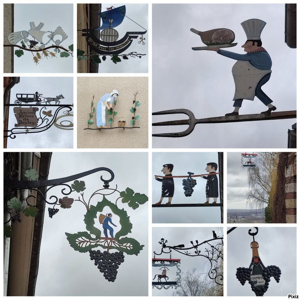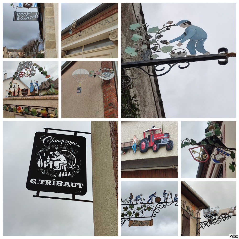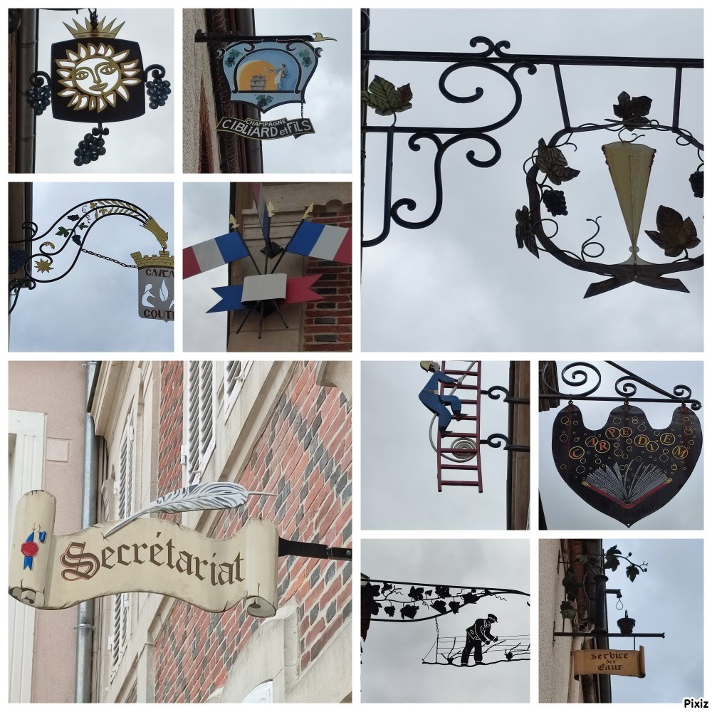 Hautvillers a ressuscité, dans les années 50, la tradition des enseignes en fer forgé qui, au Moyen Age, facilitaient le quotidien de ceux qui ne savaient pas lire. On dénombre 140 de ces pittoresques enseignes au-dessus des ruelles de ce bourg.