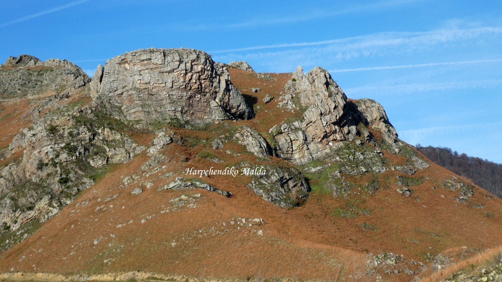 du petit emplacement (pas très propre) "parking", rando par la route jusqu'aux fermes Bethartea ... puis grand chem normal et, dés le bas d'Harpenhandiko Malda (petit sentier), toute crête jusqu'au col de Sahastegi, le sentier puis la montée au col d'Astate - visite possible à l'Astate juste à coté - puis la montée au Buztanzelhai, descente par le GR et remontée à Aintziaga