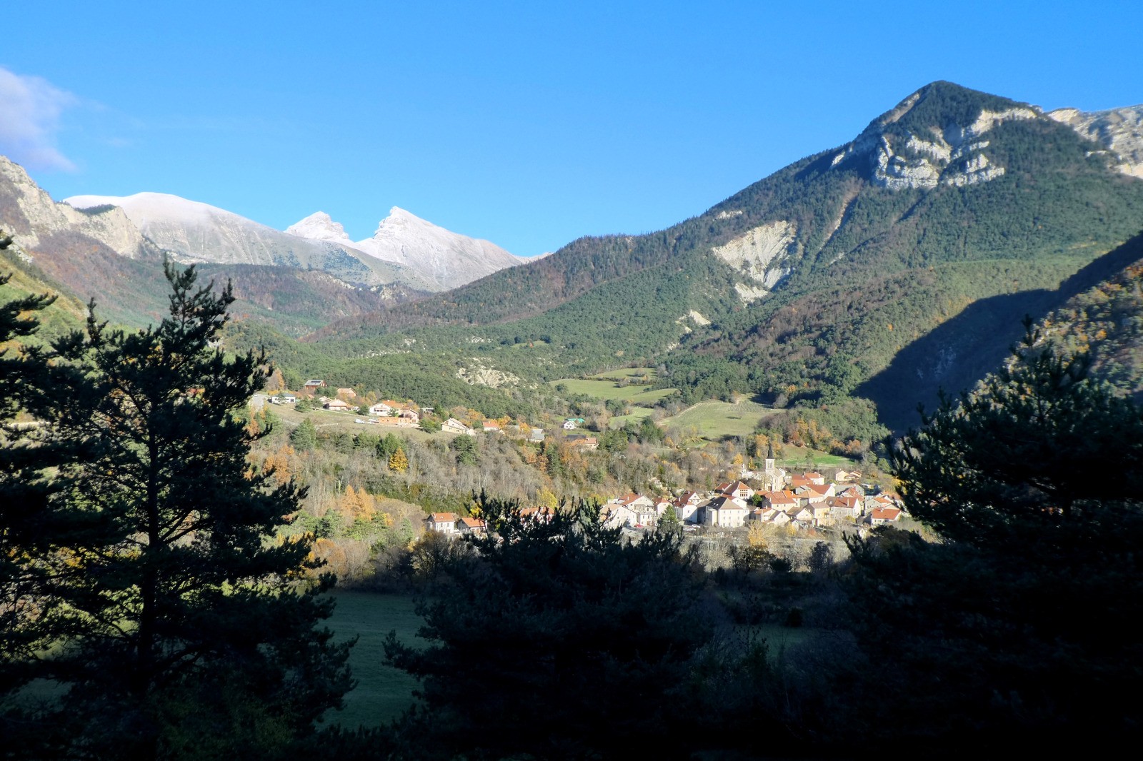 Longue boucle, entre alpages, crêtes, forêt de pins et feuillus, dominant les villages de Saint-Julien-en-Beauchêne et Montbrand.