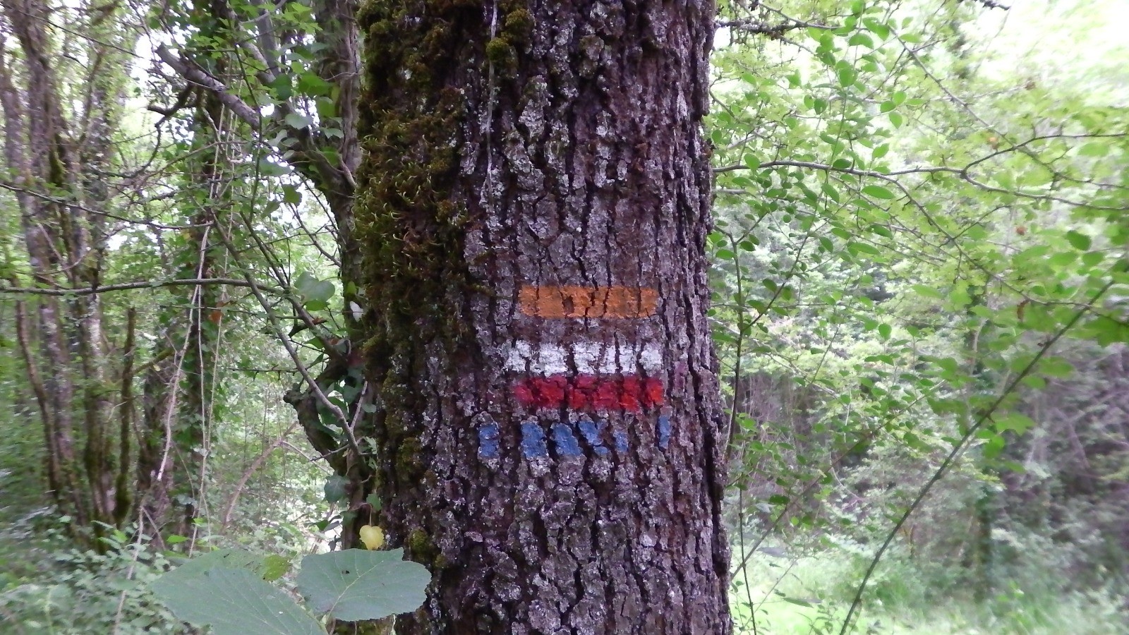 Balisage bleu, peu visible car la rando est dans le sens contraire de la rando proposée par le 47.