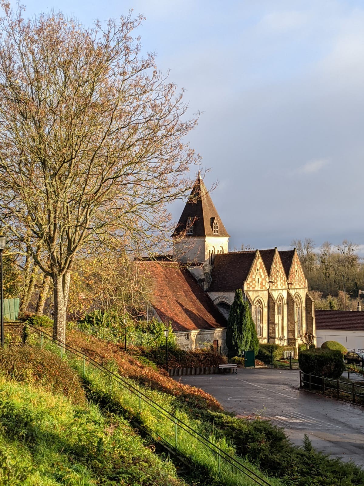 Depuis le parking Jacques Tati, traverser la D13A et descendre par le chemin et la rue du Val Adam. Quelques mètres avant la D13, prendre la sente à gauche. Traverser de nouveau la D13A et monter dans le bois par le sentier en face. Après 180 m, prendre à gauche, puis 50 m plus loin à droite. On longe les jardins et 250 m plus loin monter à droite puis à gauche afin de descendre vers la rue des Grignons. Monter quelques mètres et prendre à gauche l'escalier. Arrivé dans la rue Ste Perrine, monter à droite dans le bois. Au sortir du bois (500 m), descendre à gauche vers la mairie et l'église. prendre à droite le sentier qui surplombe l'école et continuer jusqu'à la rue du Rhuy. Monter le long du ru jusqu'au petit pont. Ne pas le traverser, mais continuer à monter vers la gauche. A la sortie du bois, virer à droite et longer ce bois : on passe devant 1 gabion et des fascines vivantes (qui ont pour rôle de retenir les boues de ruisellements). 150 m après les fascines, prendre à gauche, puis à droite. Après 400 m, prendre à gauche (ne pas continuer en direction du bois) puis 200 m plus loin (on aperçoit des yourtes à droite) prendre encore à gauche. Descendre ensuite à droite au 1er sentier (juste avant le champ avec des chevaux et un ancien contener "Servair"). Arrivé en bas, les ronces dans le chemin obligent à longer le champ vers l'Est jusqu'à la rue de Varanval. Prendre à droite, puis encore à droite la rue de la Vallée. Prendre à gauche 500 m plus loin. Descendre vers le château puis remonter vers la rue du Champ du Mont. Prendre ensuite le 1er sentier à gauche (panneau sur la cueillette des jonquilles). monter dans le bois puis à chaque croisement de sentier, tenir la droite. Après 1 km dans ce bois, virer complètement à droite. On rejoint ainsi la chapelle de Boucquy (1 km plus loin). Prendre pendant quelques mètres la route bitumée et au croisement avec la rue des Grignons, continuer sur le sentier en face. Prendre ensuite le 1er sentier à droite, passer devant le calvaire et longer à gauche la rue de Dienval (D13A) jusqu'au point de départ.