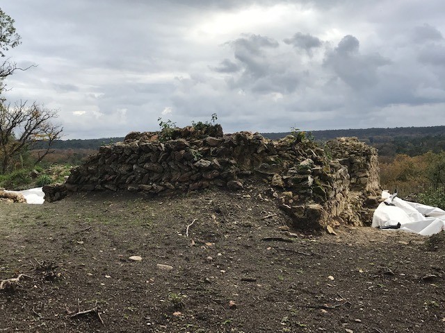 Départ du petit parking de la maison forestière de Bois le Roi, à l'aller, emprunter le sentier bleu 12 Est jusqu'à la Butte Saint-Louis, voir les vestiges actuellement en fouille.