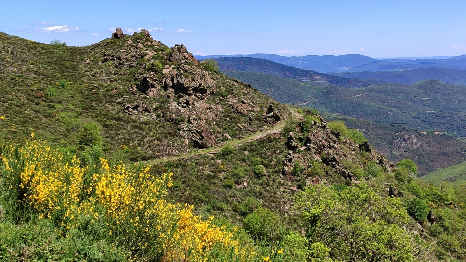 Au départ de Cours le Bas (St Gervais sur Mare) une magnifique rando dans le massif de l'Espinouse, par le village de Rosis, le tour de la Cabrière dominant les gorges de Colombières et le hameau de Madale.