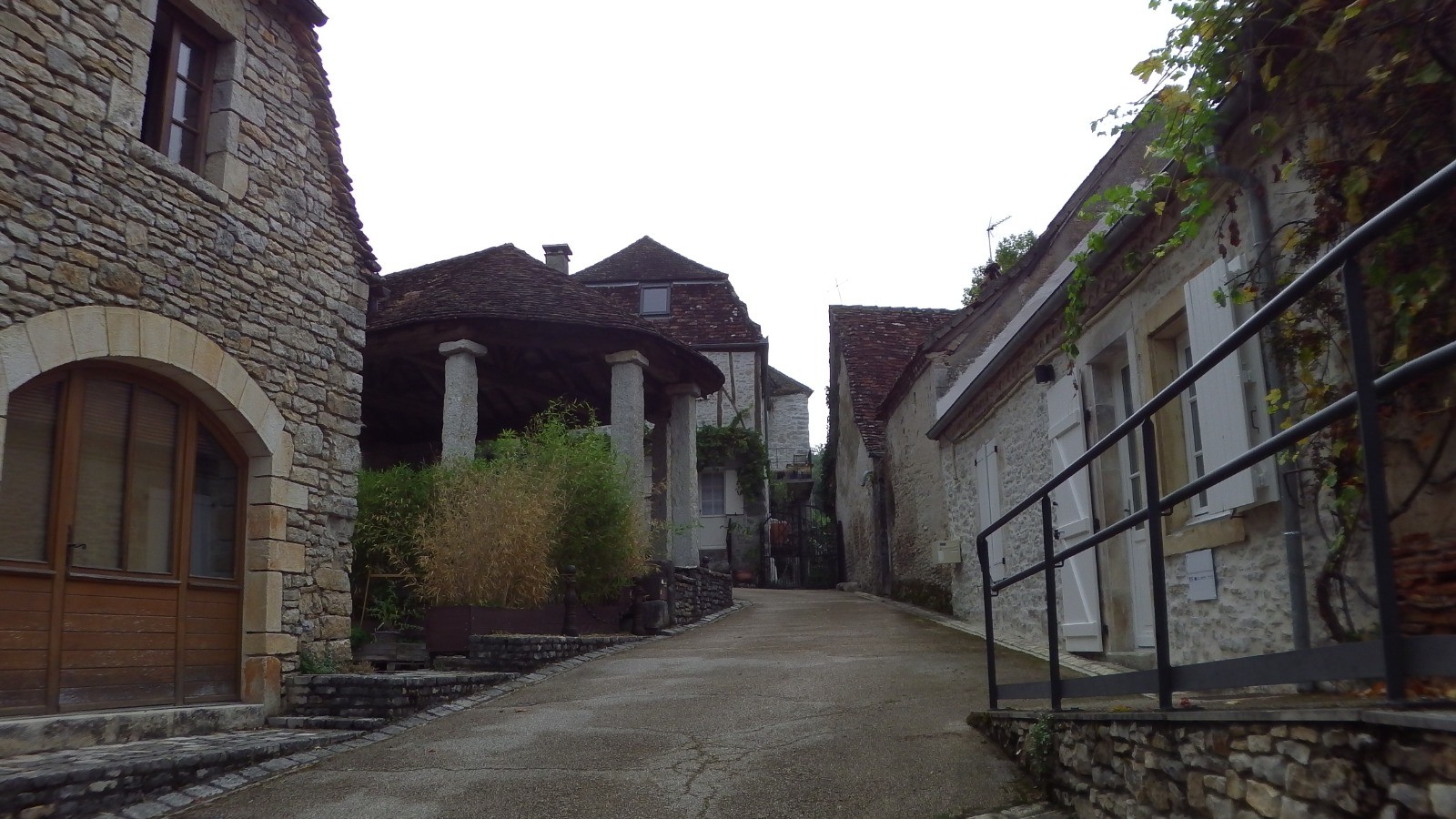 Au départ, on monte à gauche dans le village, remarquable par ses maisons accrochées à la pente. Une façade renaissance sur le haut est surprenante.
