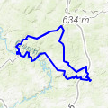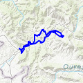 Puis en bleu au retour, nous avons pris le nouveau tracé qui n'est pas complétement terminé, car nous tombons dans une carrière, la passerelle officielle n'est pas terminée, et il manq »