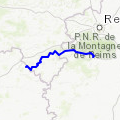 Une partie sur route ouverte calme entre Beaumont/Vesle et Isse, route calme cependant. A noter une belle côte entre Les Petites Loges et Trépail, sur un »