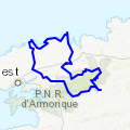 Grand Tour St Tho Monts d'Arree Cote Nord Départ de ma commune (Saint Thonan, via Landerneau, Sizun (début des Monts d'Arrée), Huelgoat, Poullaen, Saint Pol de Léon, Roscoff, Goulven, Brignogan, Menez-Ham (avec la maison des douaniers coincée entre 2 énormes blocs rocheux) puis retour par Lesneven/Le Folgoët (super église/cathédrale)).