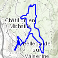 Le long de la Valserine au départ du Pont des Pierres VillesCe parcours a pour finalité d'effectuer une boucle dans la vallée de la Valserine entre Montanges (Pont des Pierres) et Champfromier. Le tracé aller suit la rivière de la Valserine. Le retour s'effectue via le tracé de la Voie du Tram de Lancrans à Chézery. En cours, deux petits tunnels seront traversés.